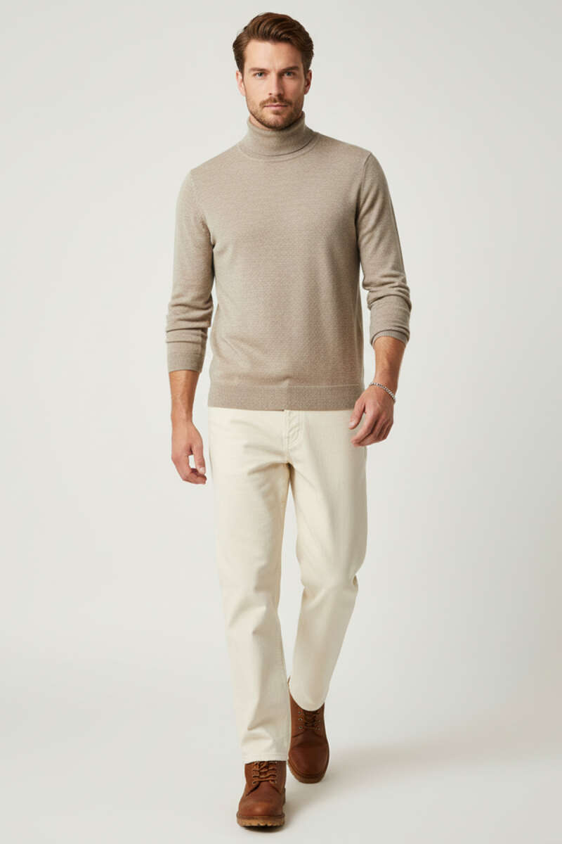 Tam Balıkçı Erkek Triko Kazak Ekru