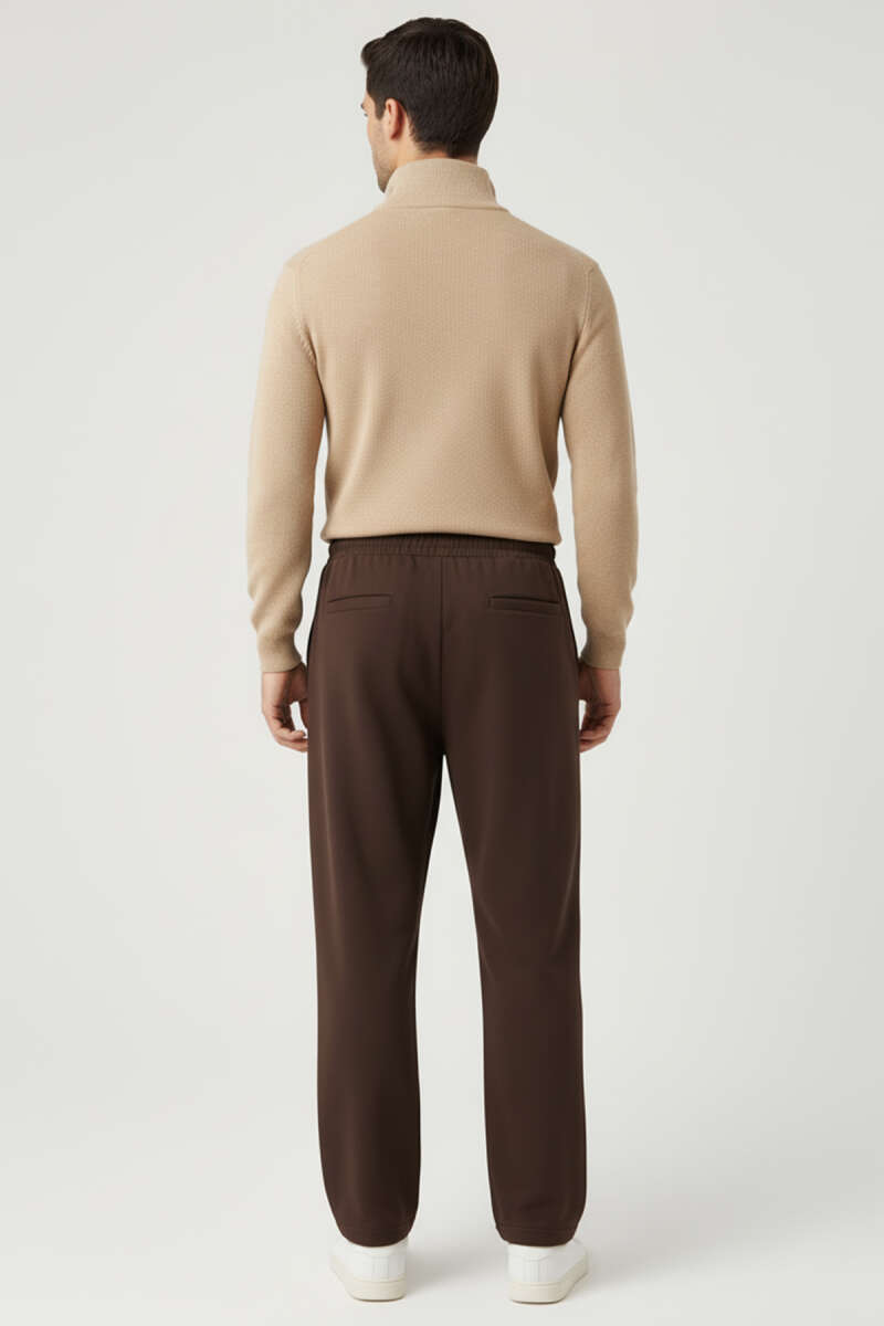Yaka Fermuarlı Triko Erkek Kazak Kahve