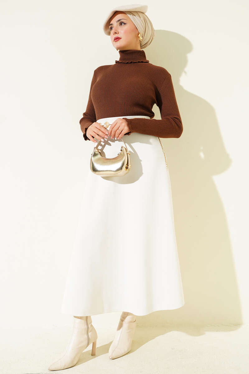 Yandan Cepli Basic Etek Latte