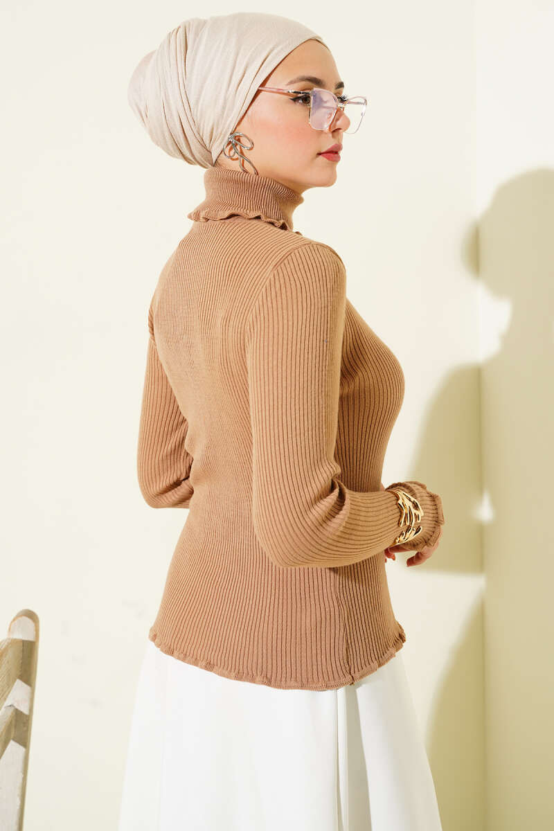 Balıkçı Yaka Fırfırlı Triko Kazak Gri