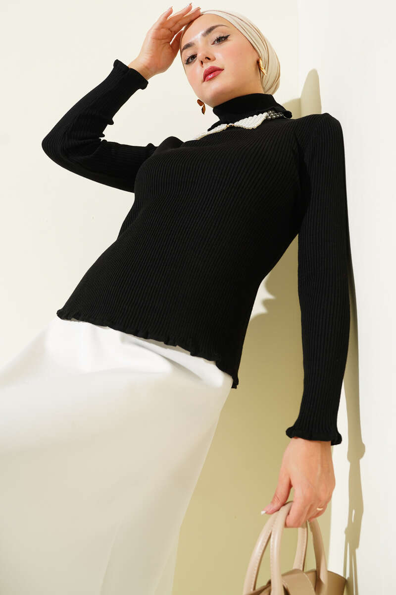 Bisiklet Yaka Örme Triko Erkek Kazak Siyah