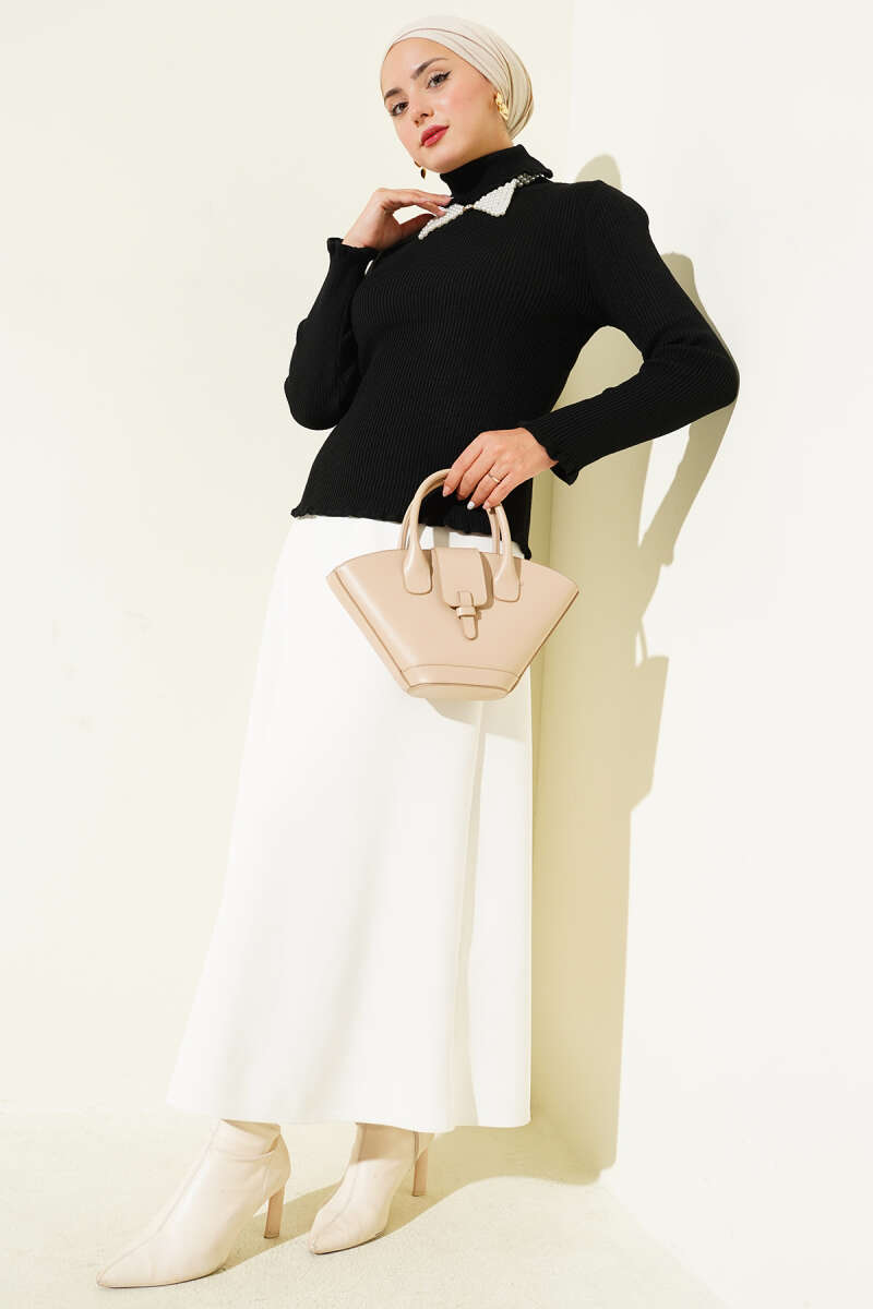Fitilli Esnek Triko Kazak Beyaz