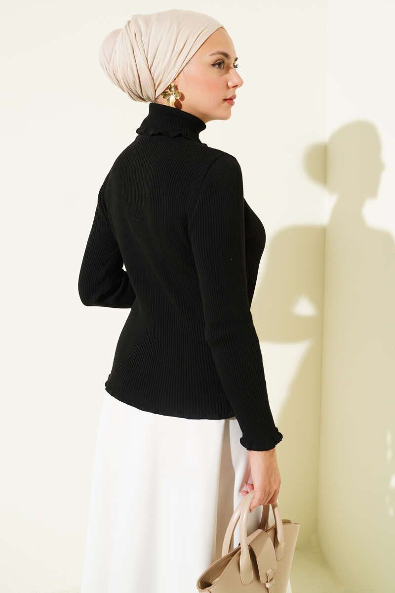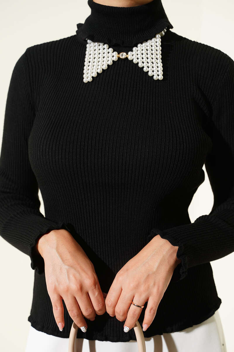 Madonna Yaka Düğmeli Bluz Siyah
