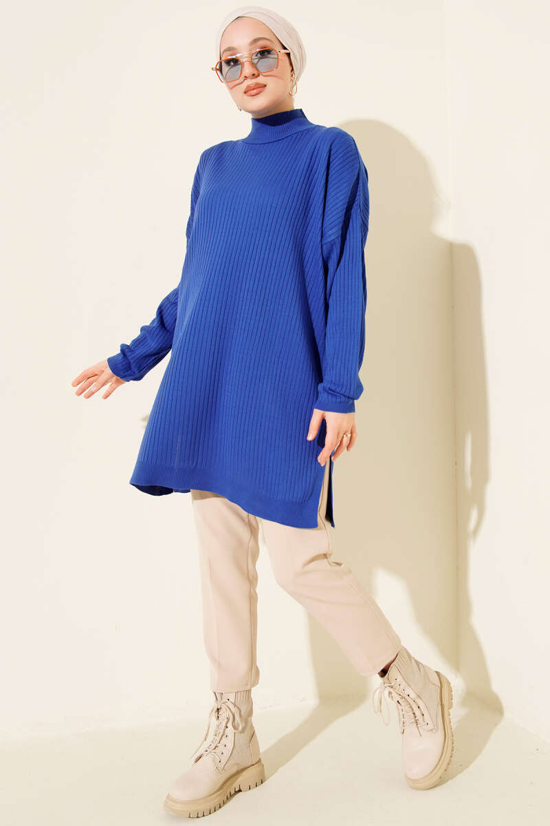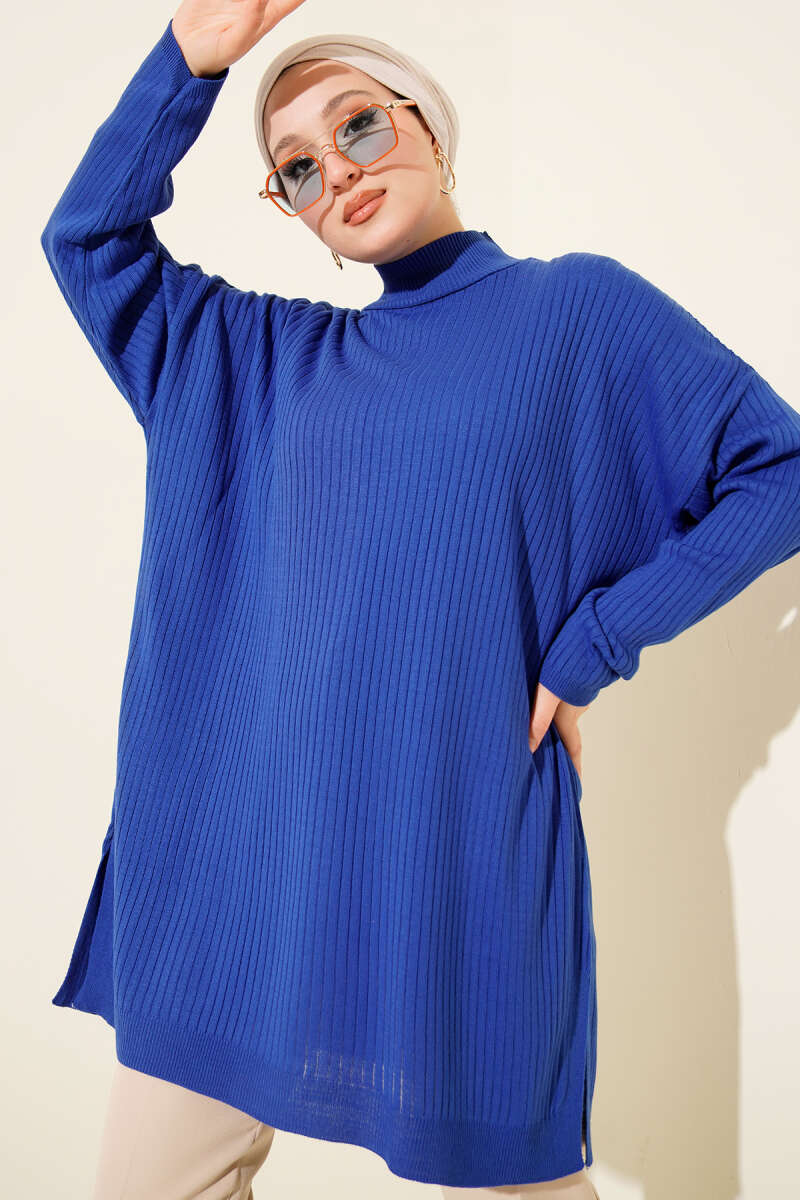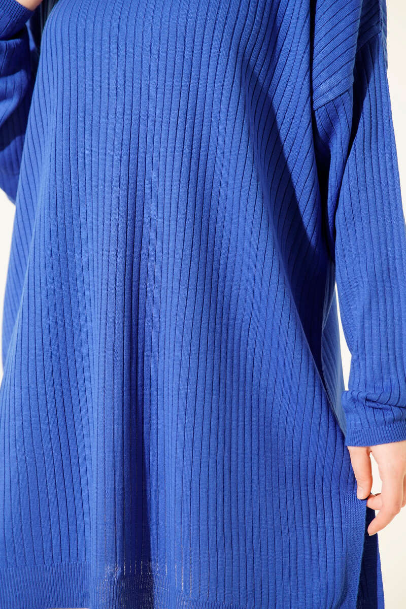Balıkçı Yaka Fitilli Salaş Triko Tunik Zümrüt