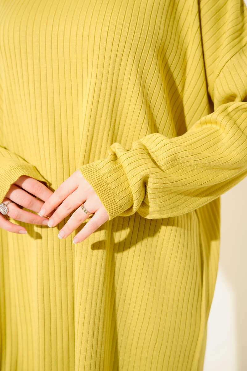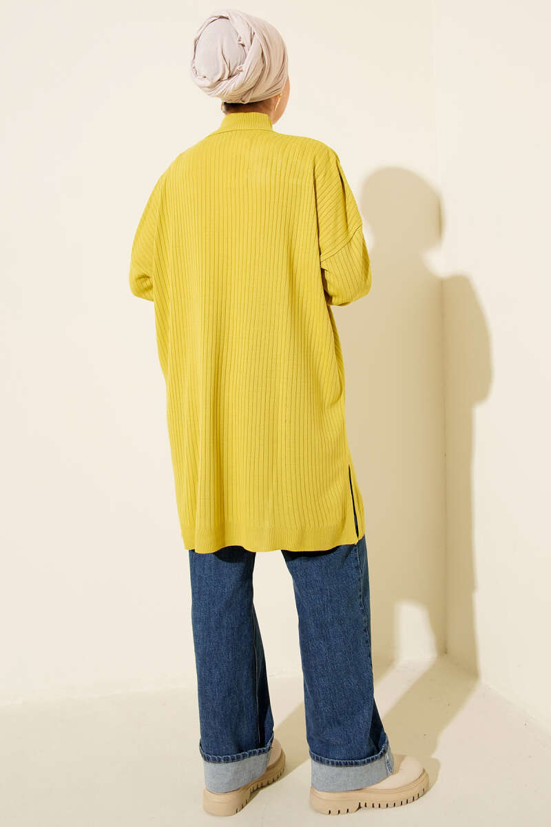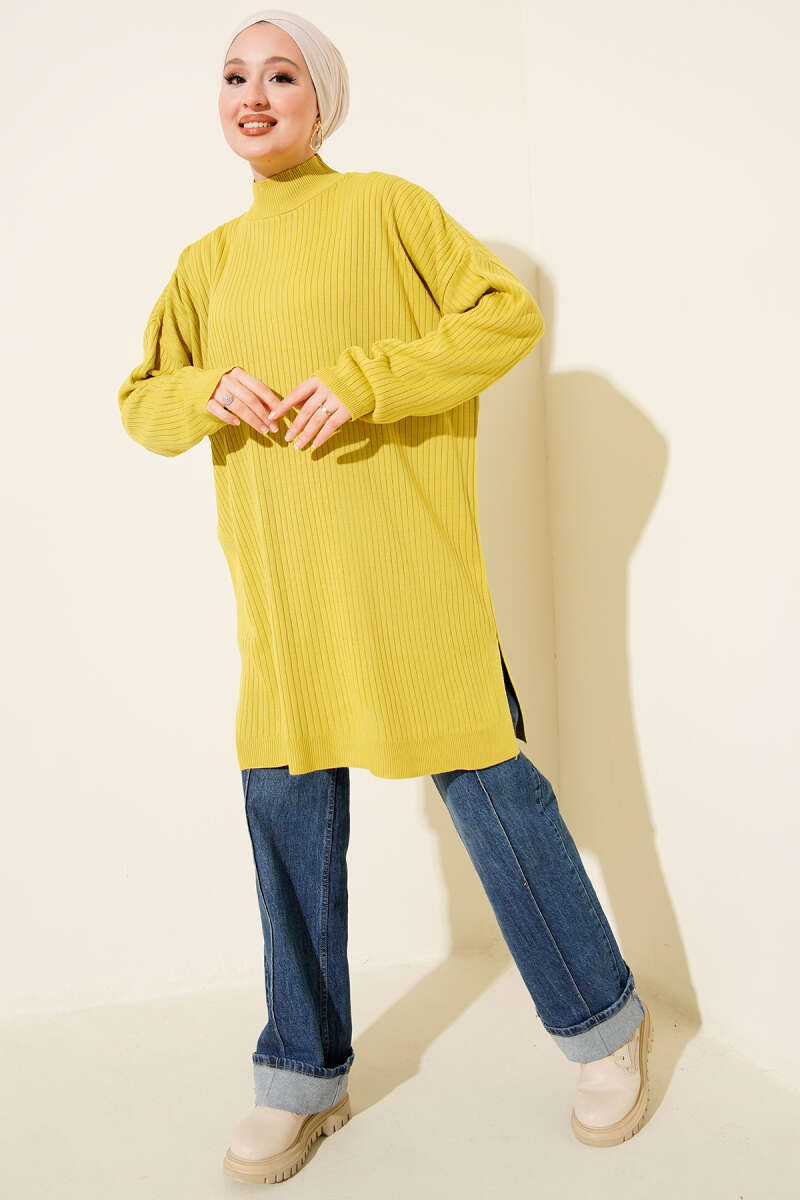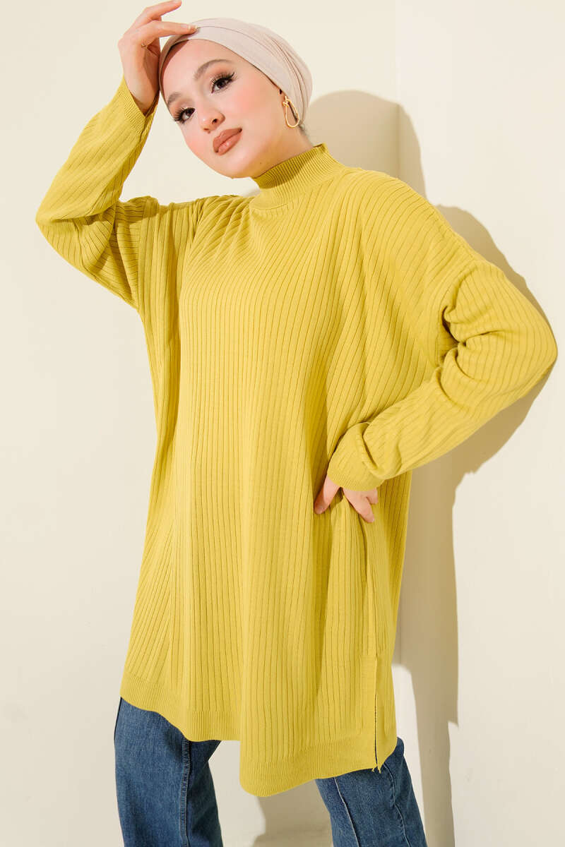 Balıkçı Yaka Fitilli Salaş Triko Tunik Saks