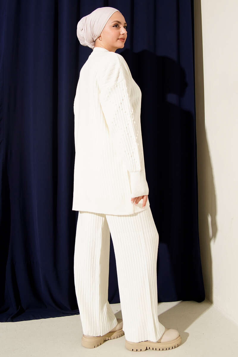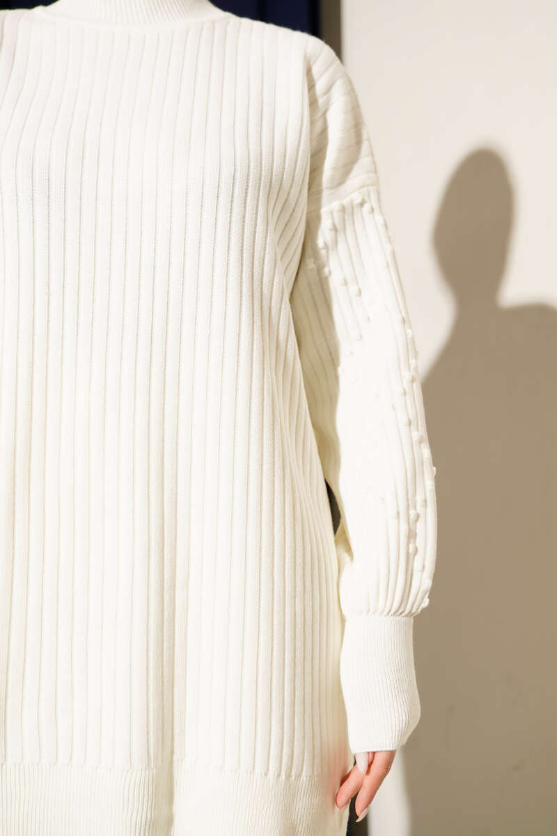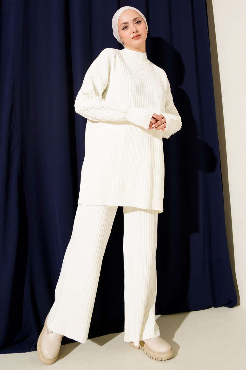 Balıkçı Yaka Fitilli Triko İkili Takım Bej