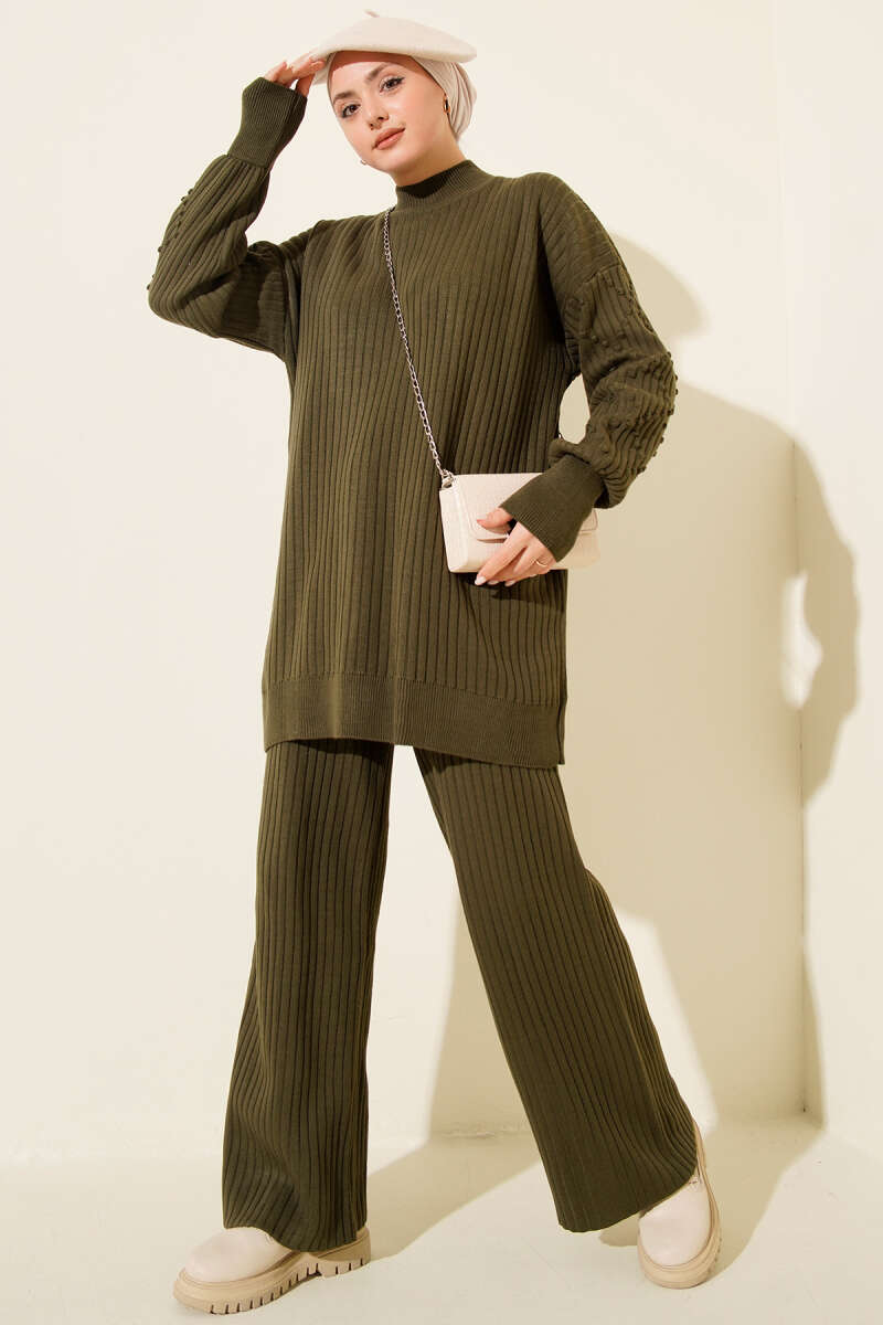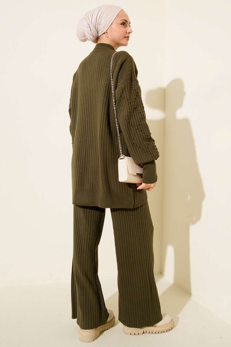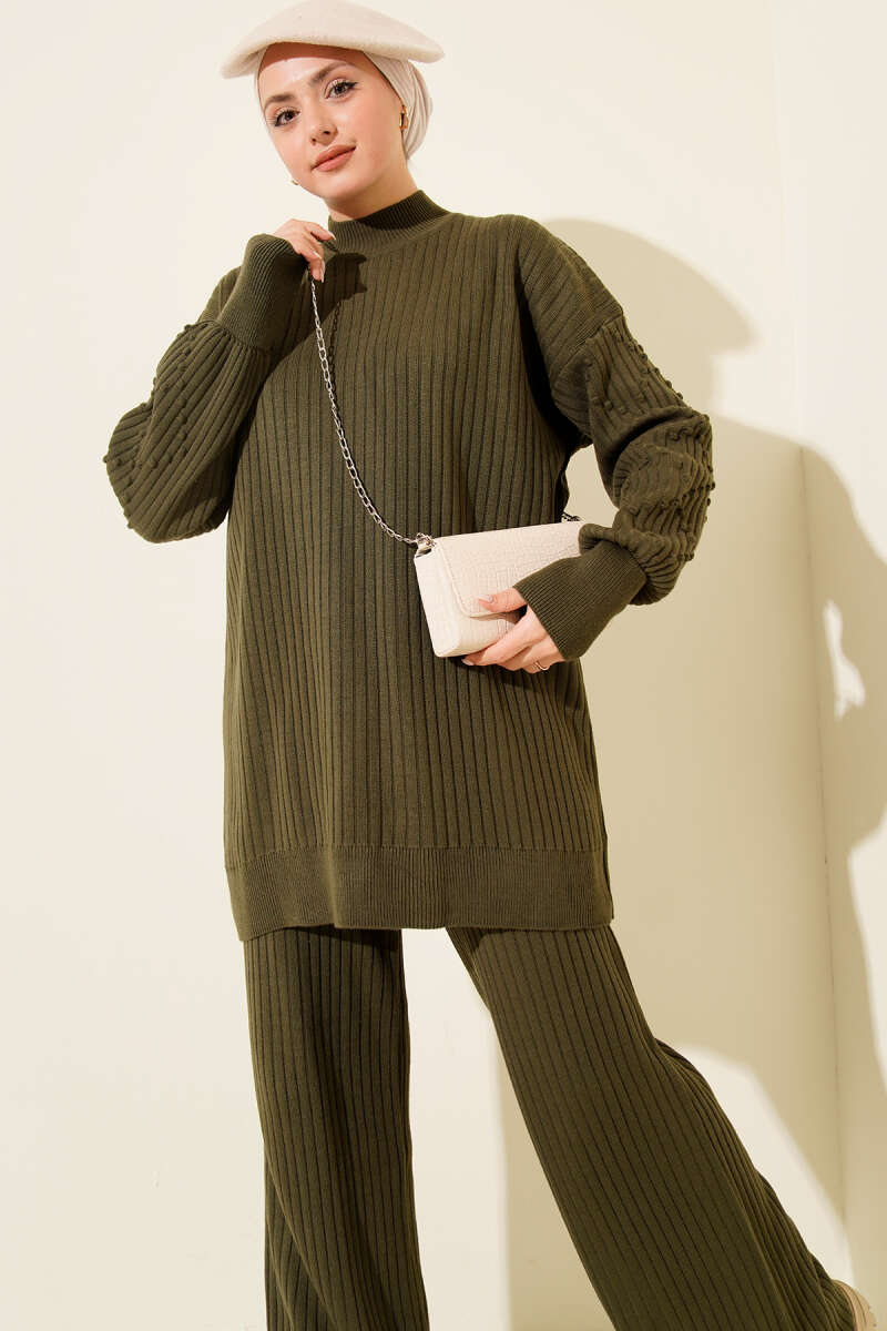 Balıkçı Yaka Fitilli Triko İkili Takım Zümrüt