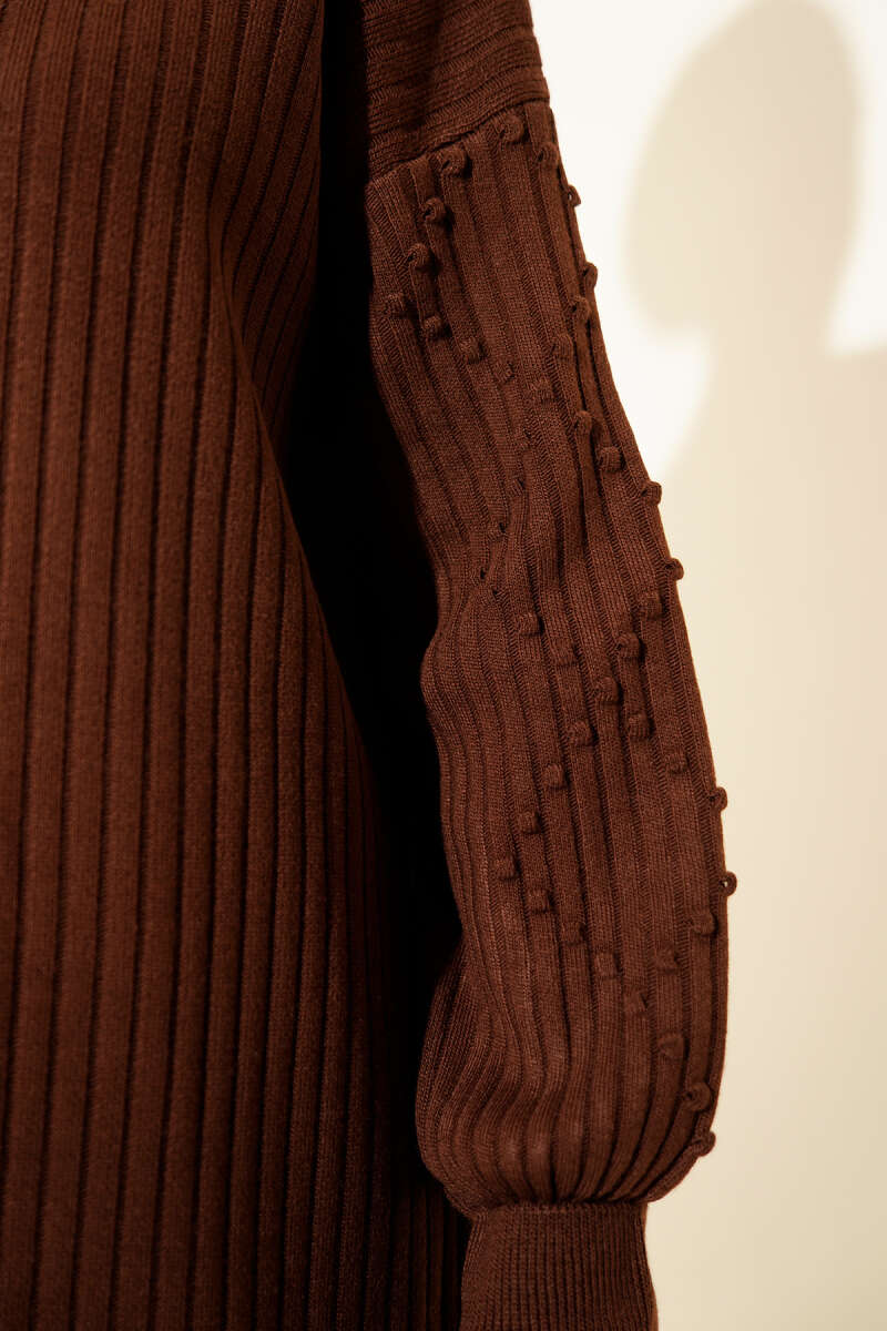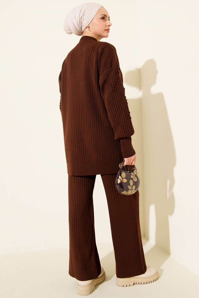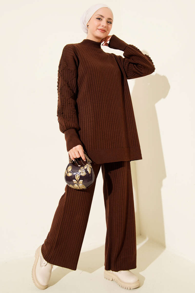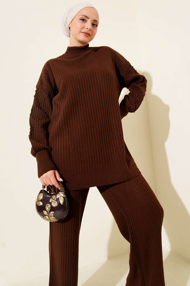 Balıkçı Yaka Fitilli Triko İkili Takım Füme