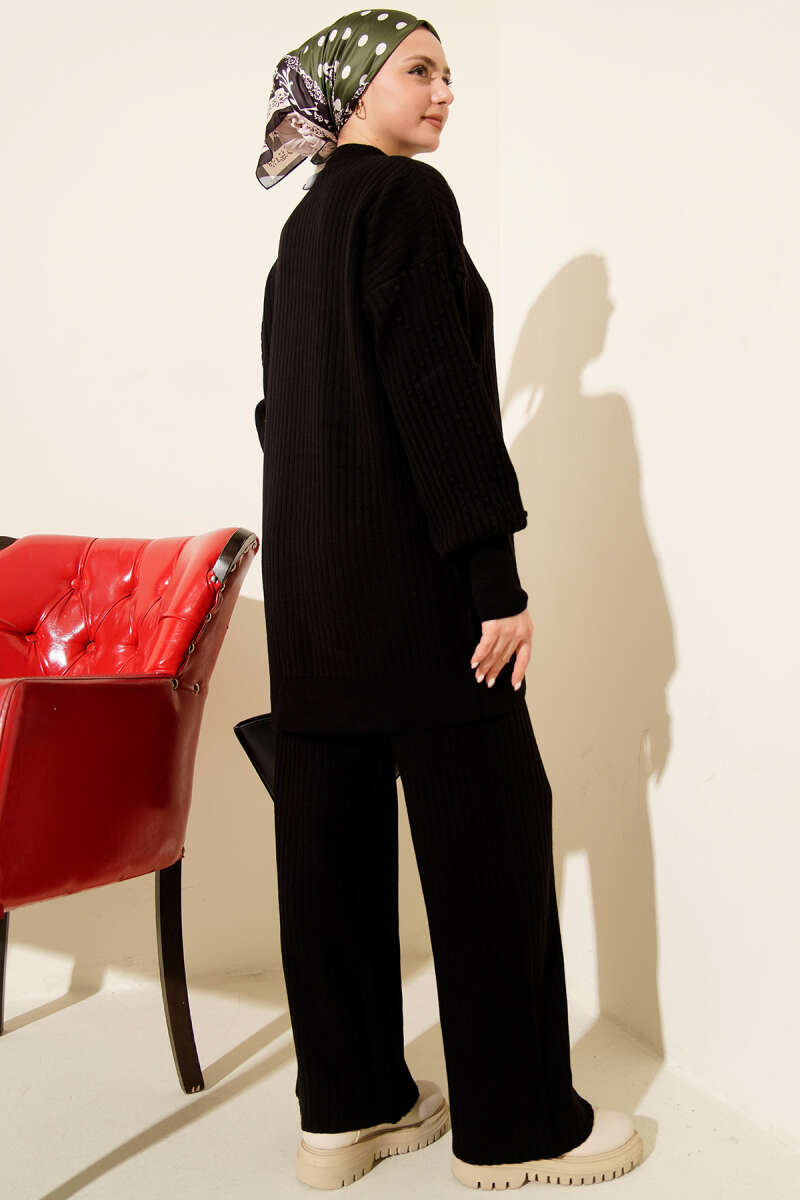 Göğüs Parçalı İp Kuşaklı İkili Takım Siyah