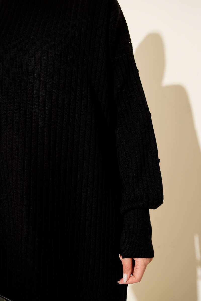 Yan Yırtmaçlı Kurdele Nakış Detaylı Tunik Siyah