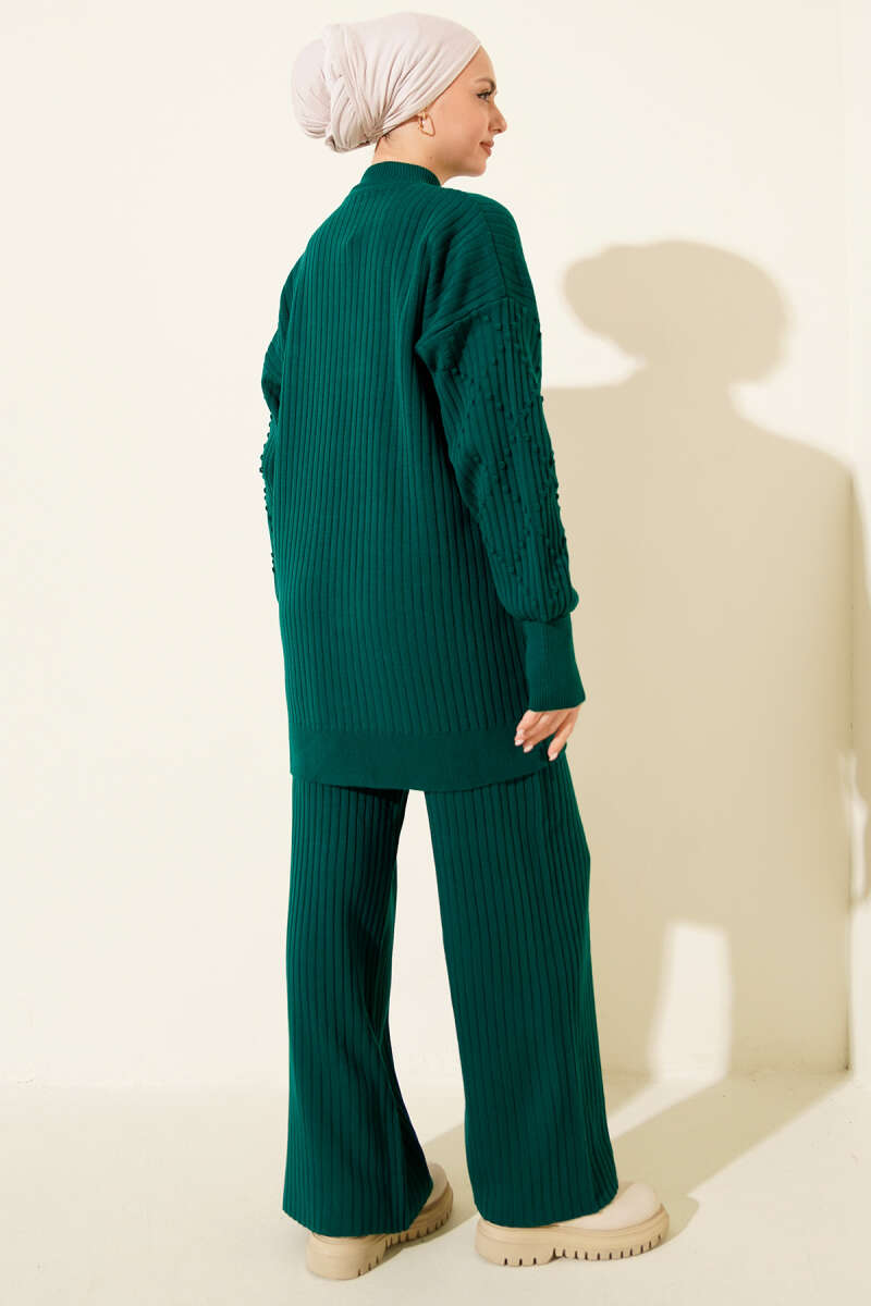 Balıkçı Yaka Fitilli Triko İkili Takım Haki