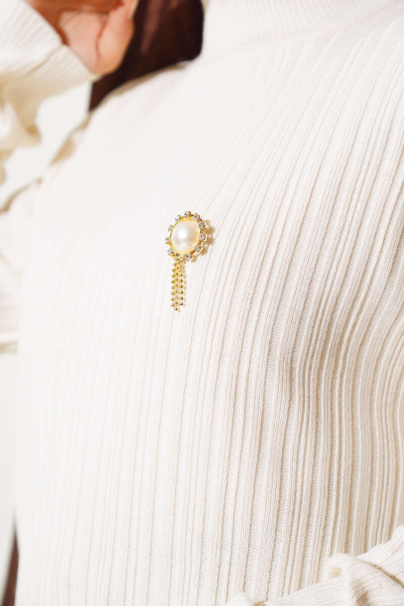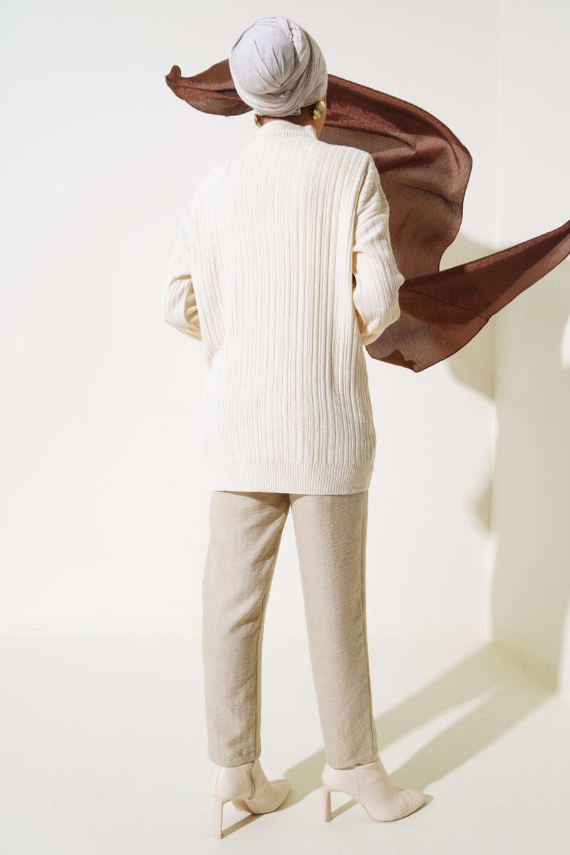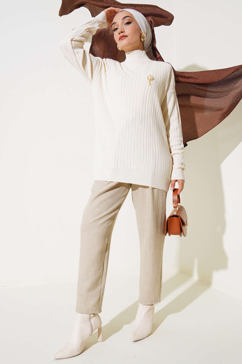 Balıkçı Yaka Balon Kol Triko Tunik Latte