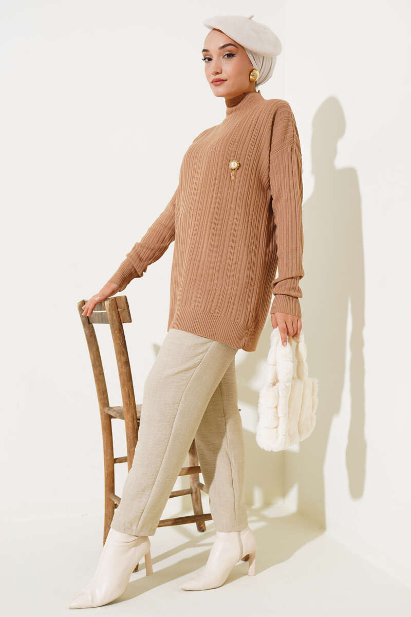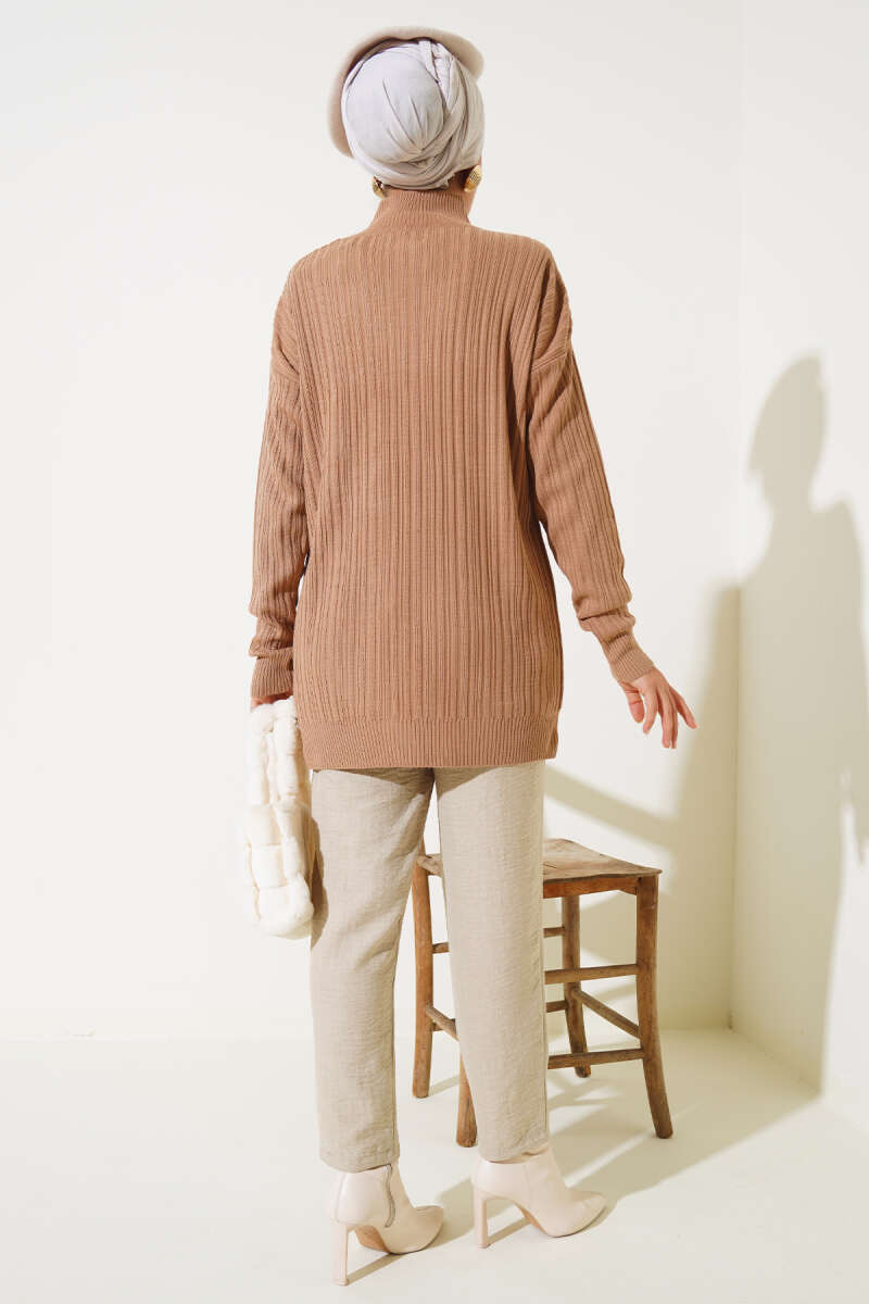 Balıkçı Yaka Balon Kol Triko Tunik Kahve