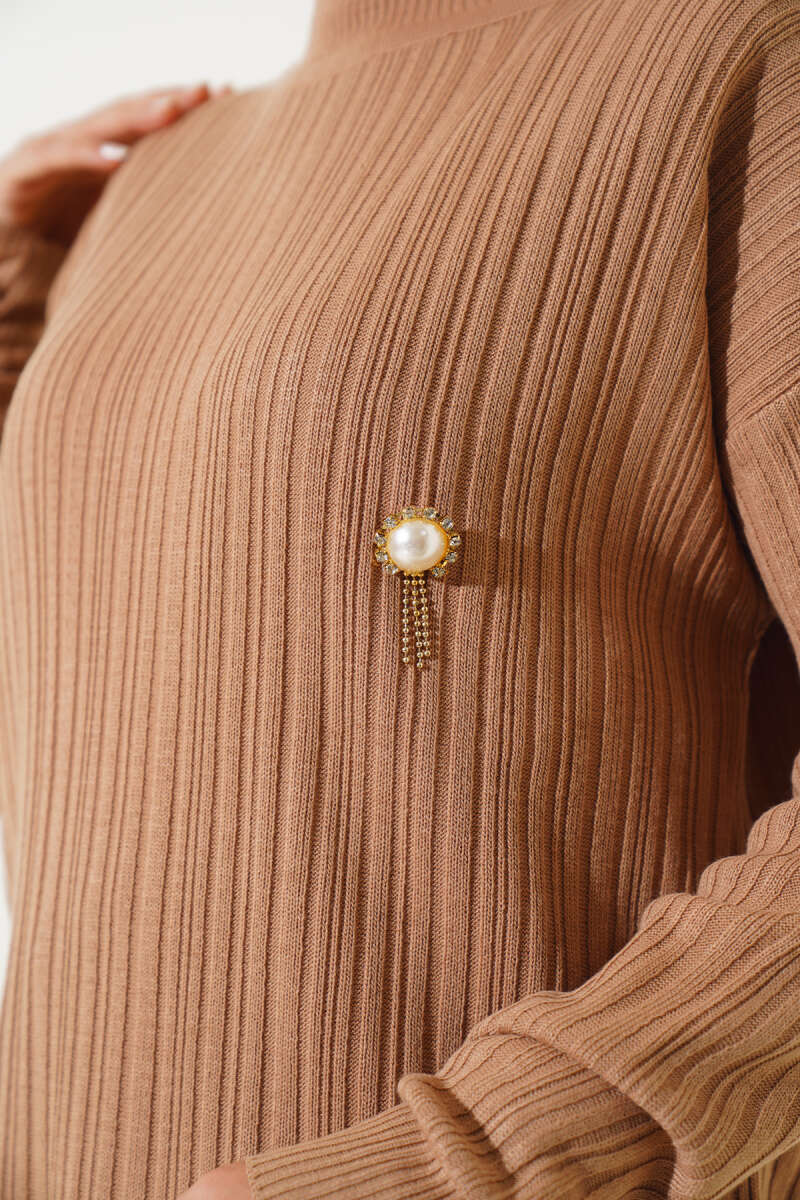 Balıkçı Yaka Balon Kol Triko Tunik Latte