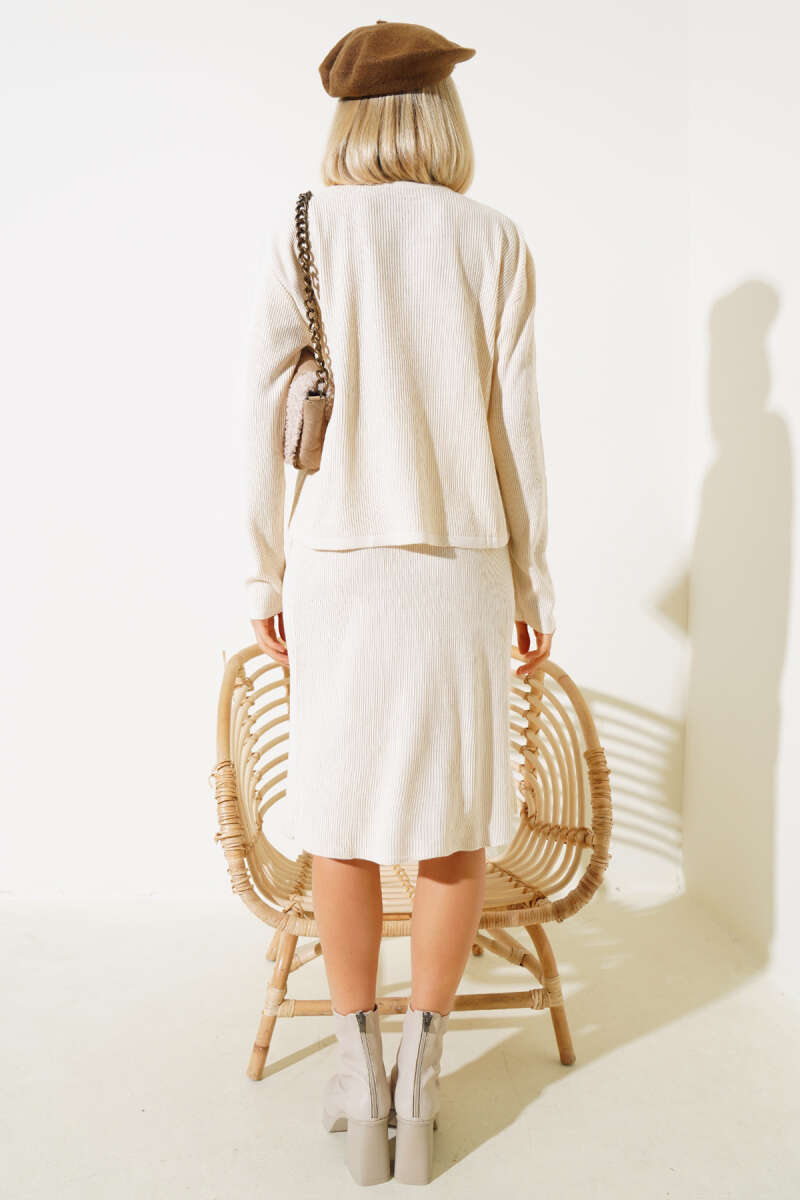 Balıkçı Yaka Midi Etekli Triko Takım Bej
