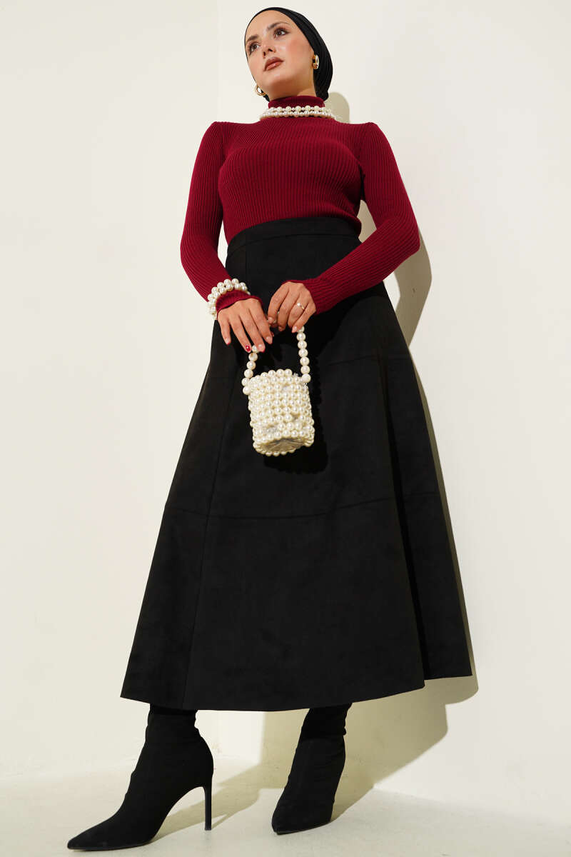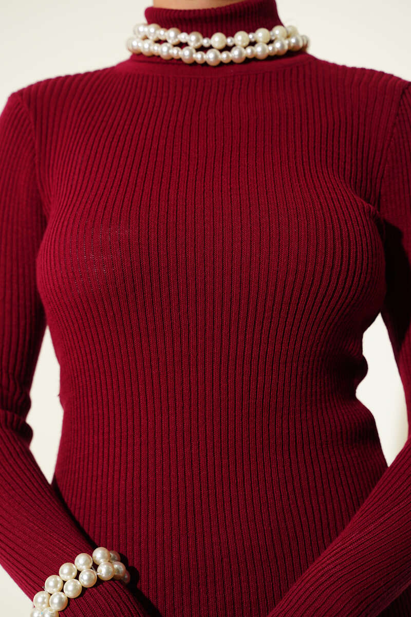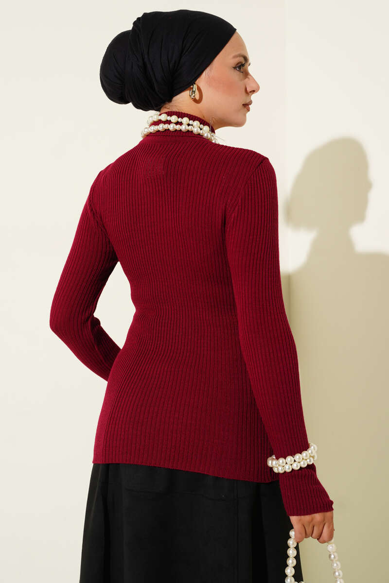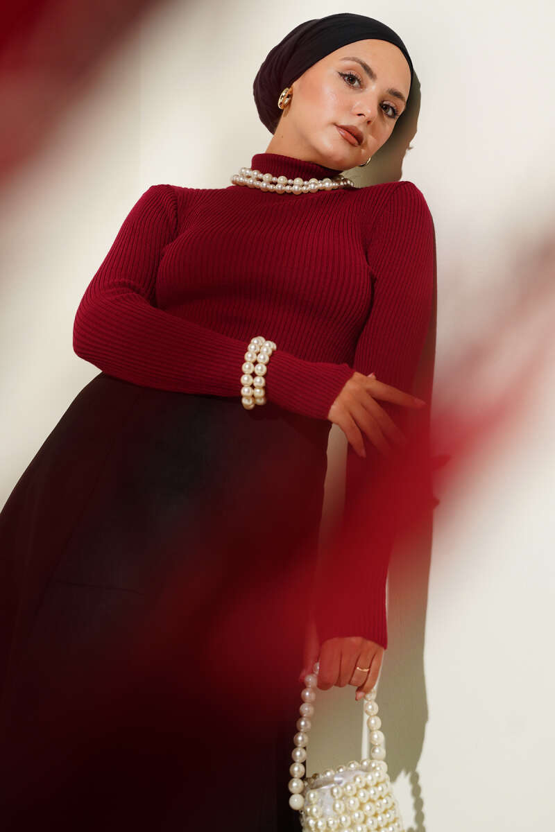 Balıkçı Yaka Parmak Geçirmeli Triko Kazak Kırmızı