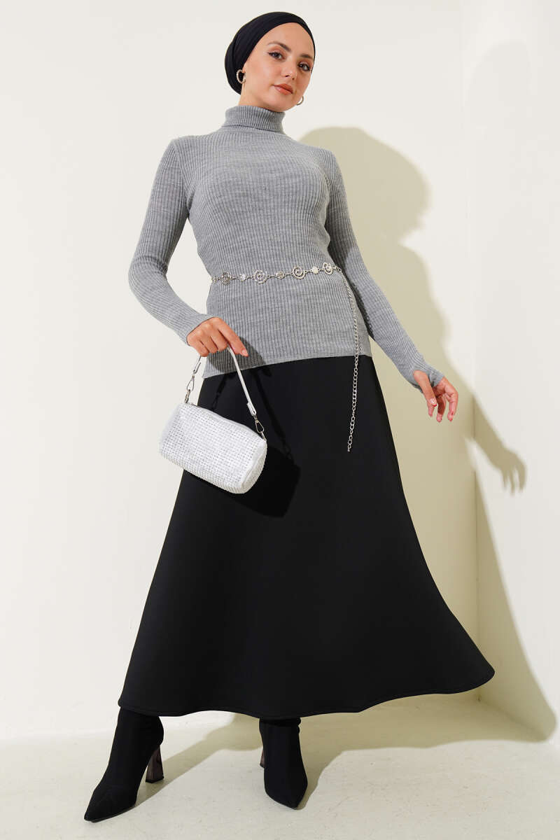 Balıkçı Yaka Parmak Geçirmeli Triko Kazak Gri