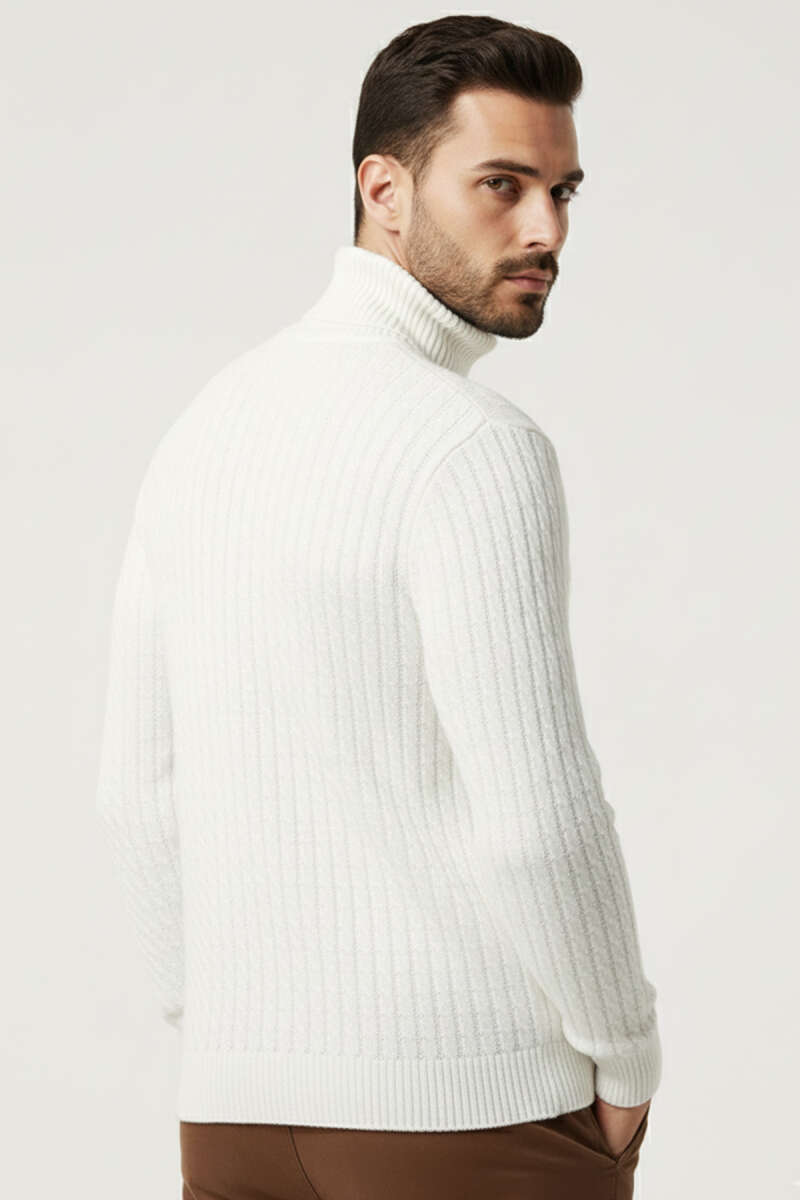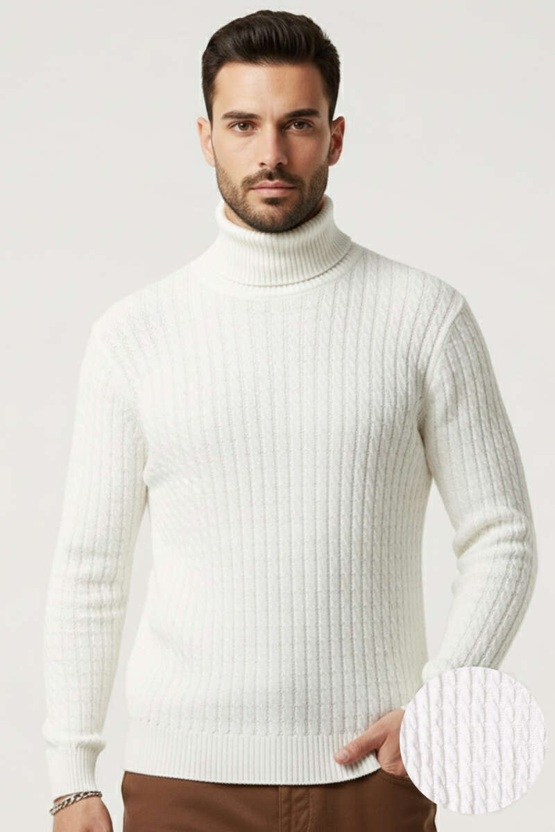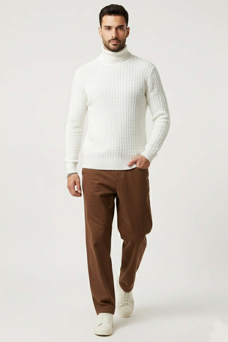 Balıkçı Yaka Saç Örgü Erkek Kazak Ekru
