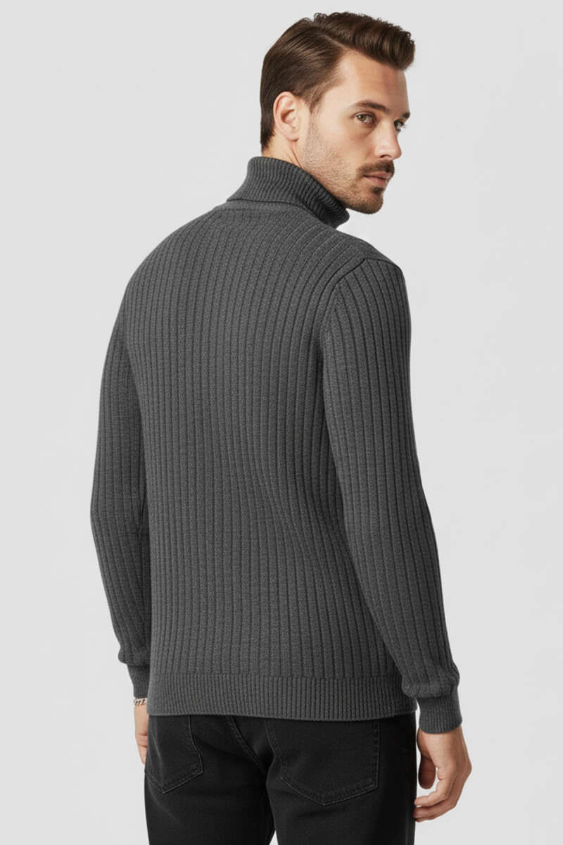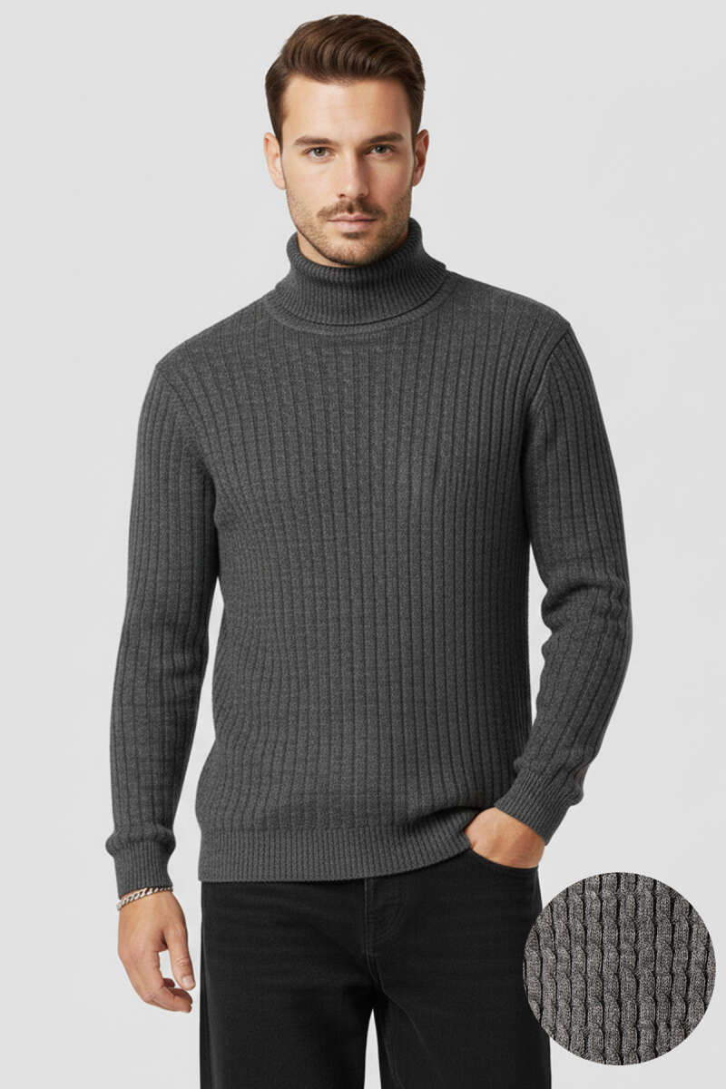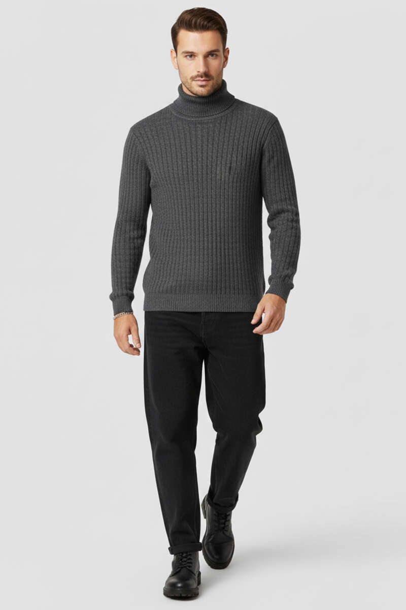 Balıkçı Yaka Saç Örgü Erkek Kazak Füme