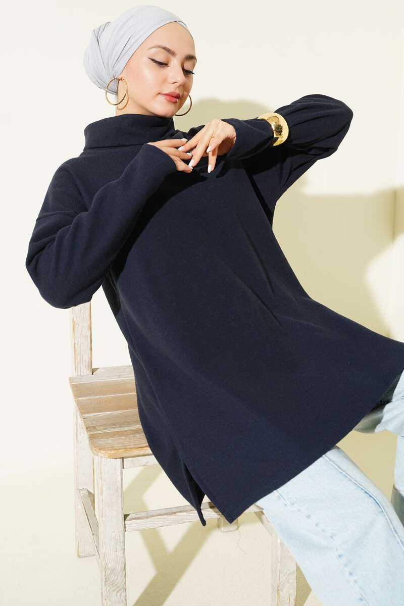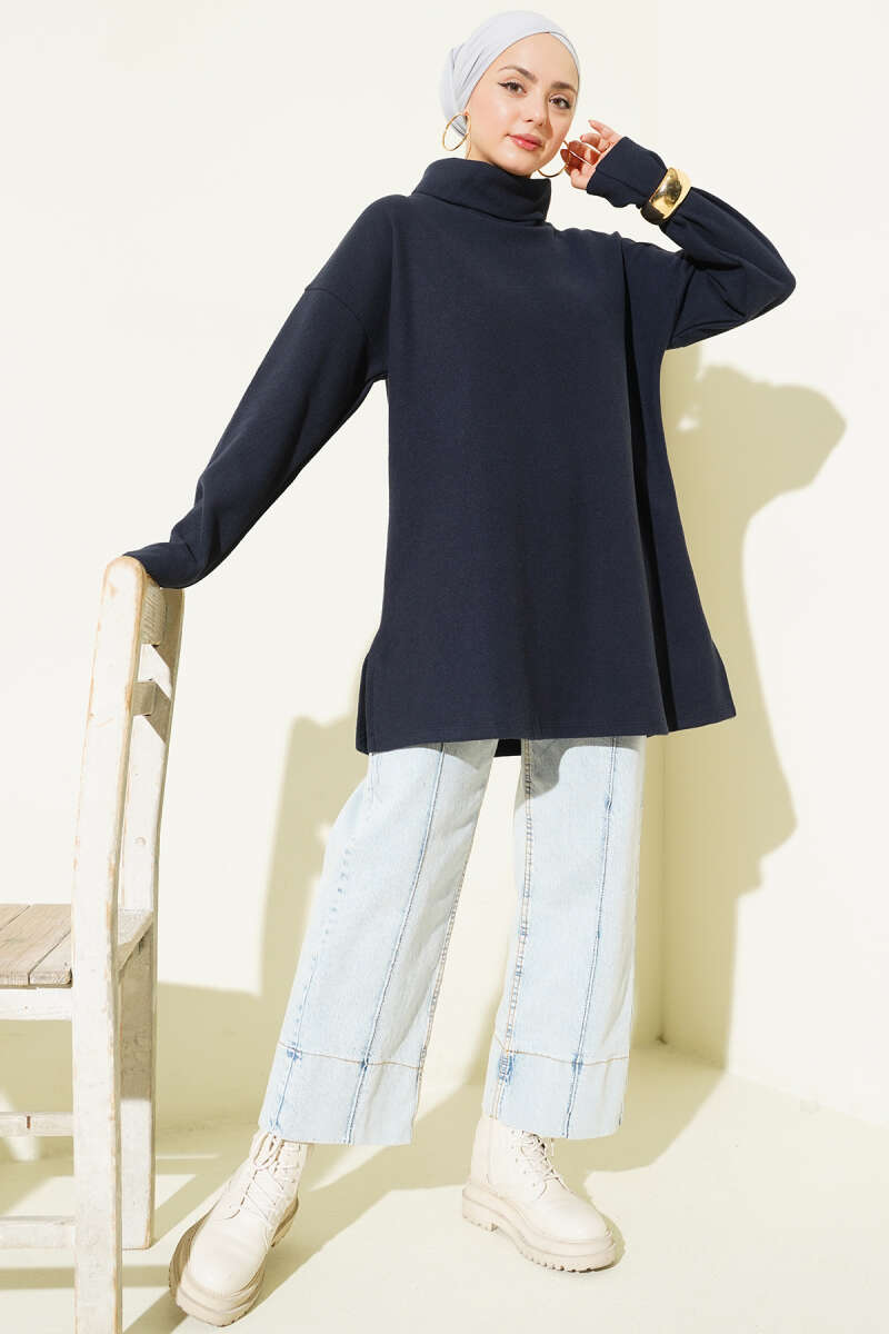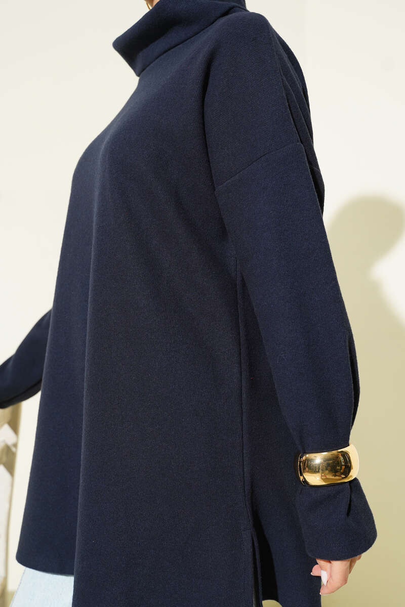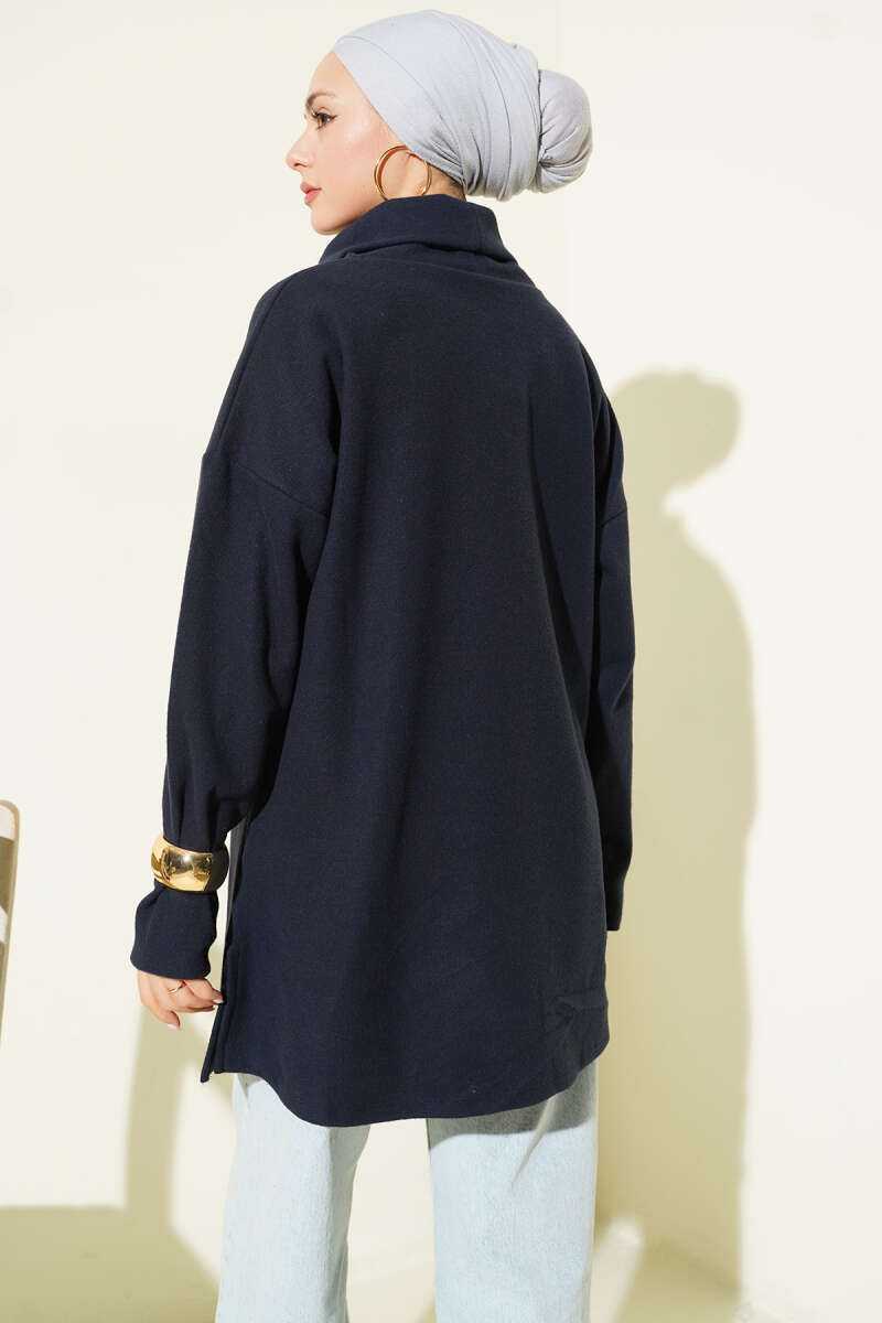 Bilek İpli Fitilli Kaşe Tunik Lacivert