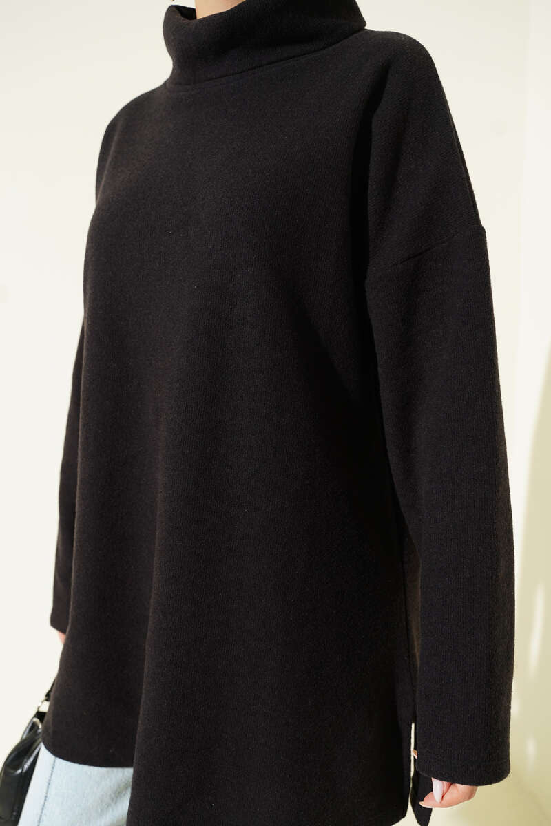 Serpme Taşlı Triko Tunik Siyah