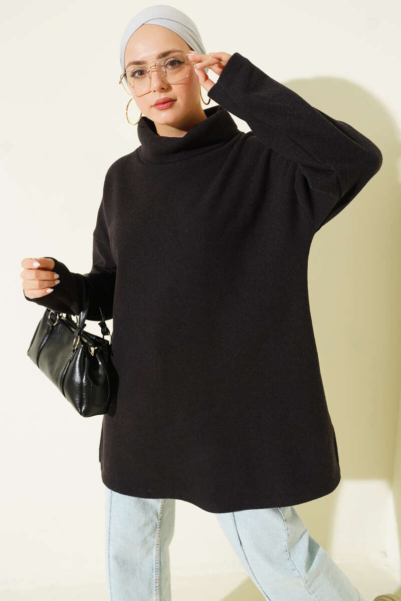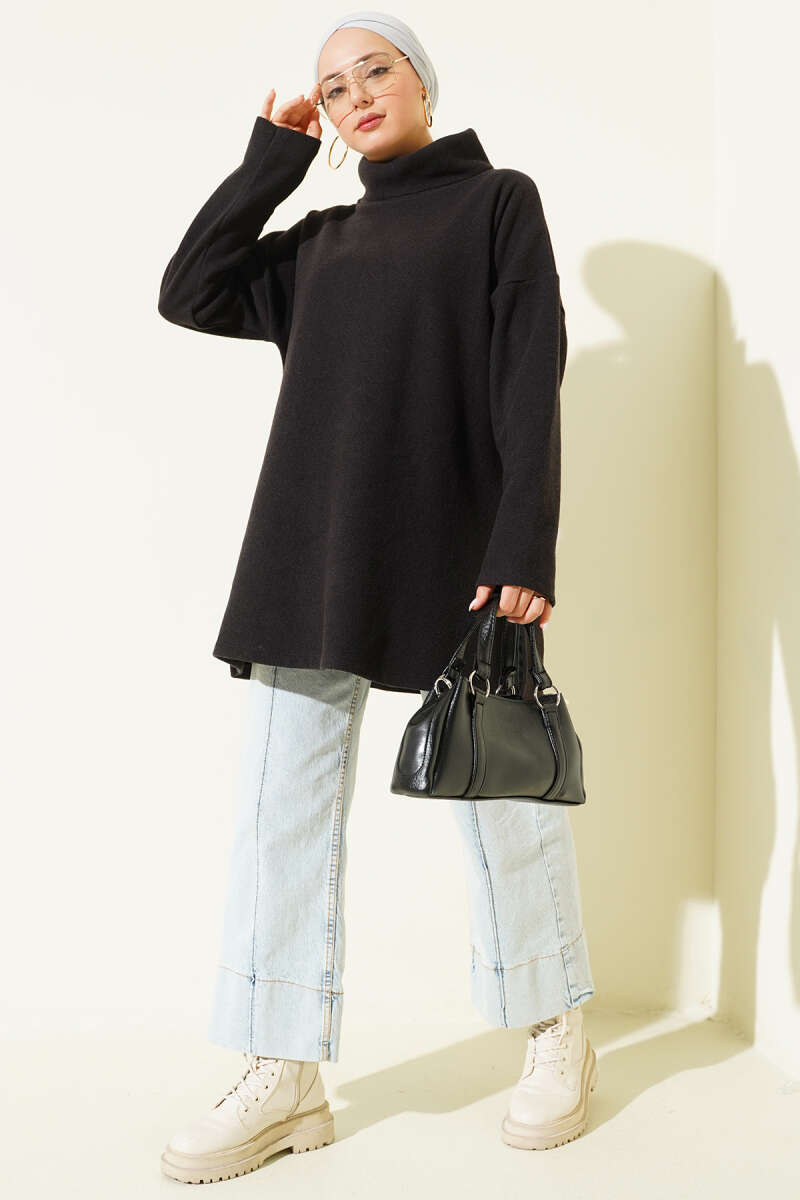 Loyşa Geniş Kollu İp Kuşaklı Tunik Siyah