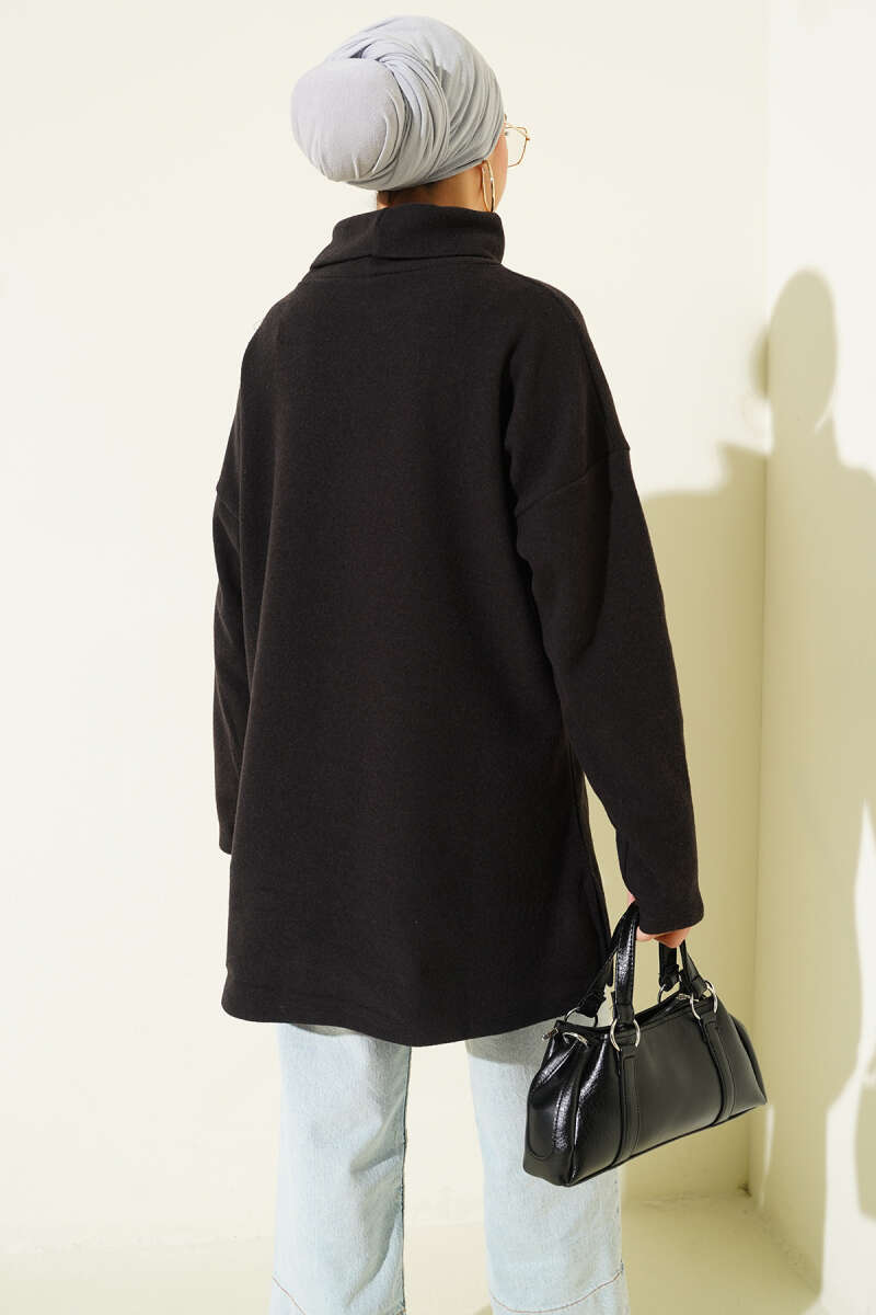Bilek İpli Fitilli Kaşe Tunik Kahve