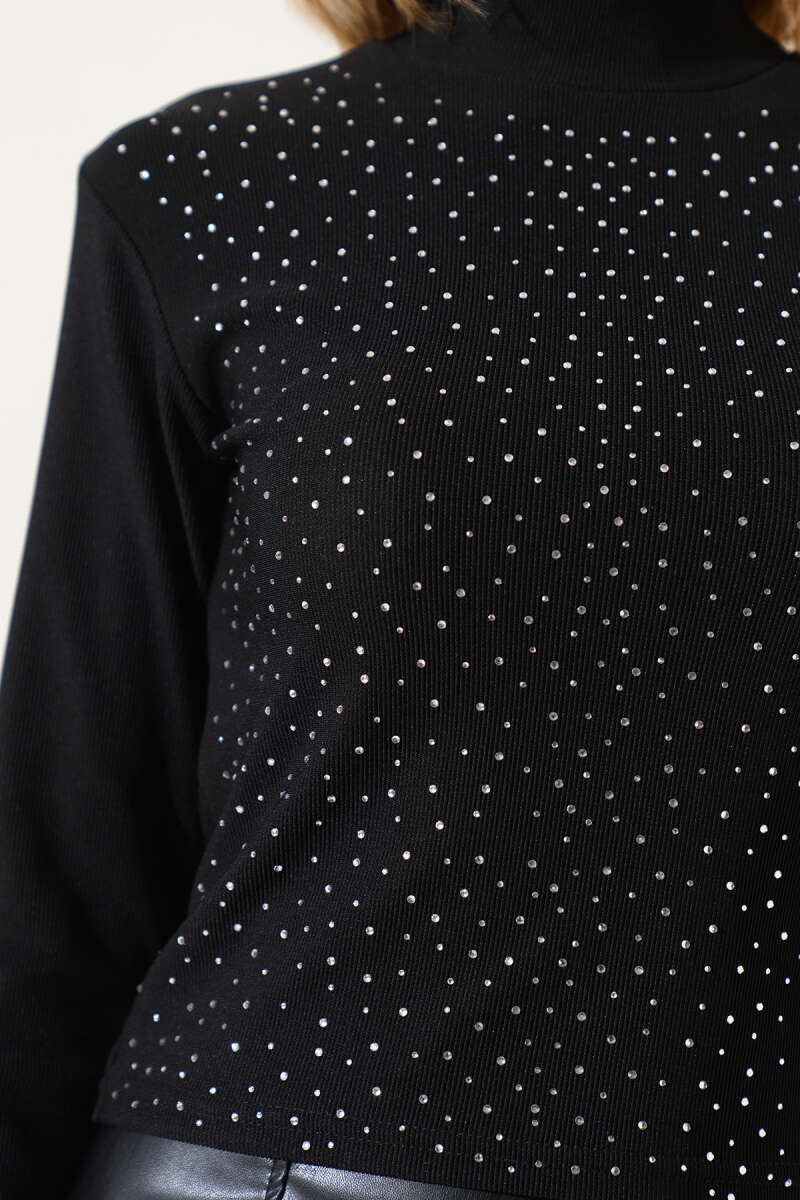 Balıkçı Yaka Taşlı Kaşkorse Body Siyah