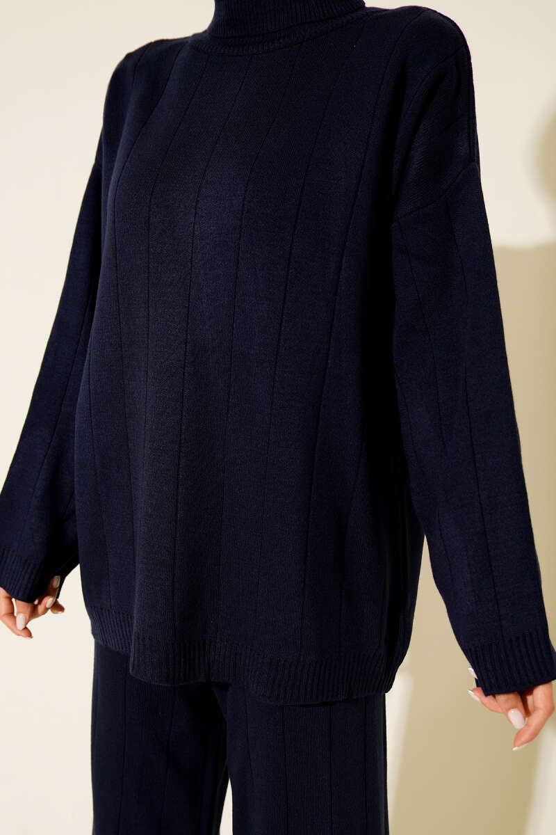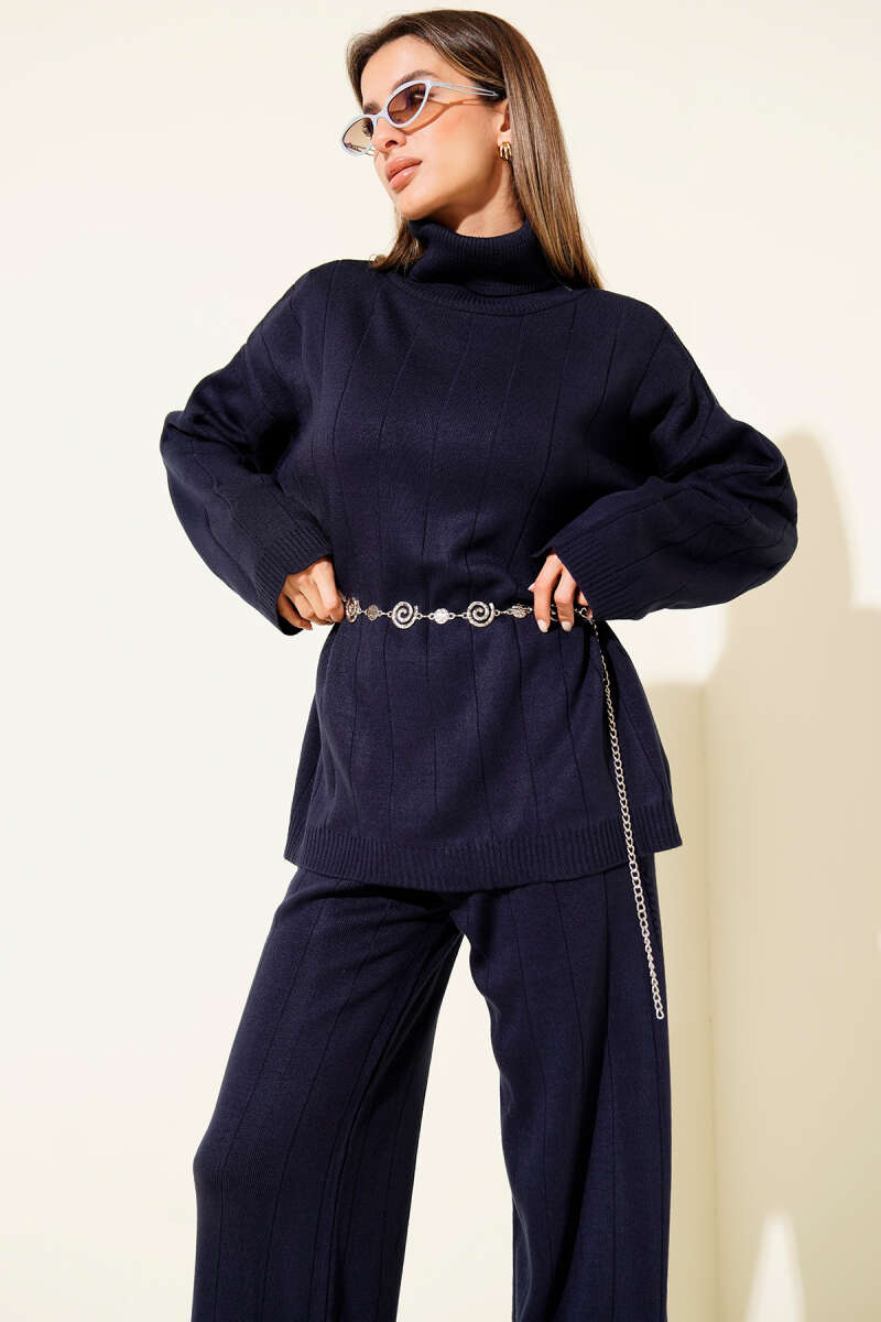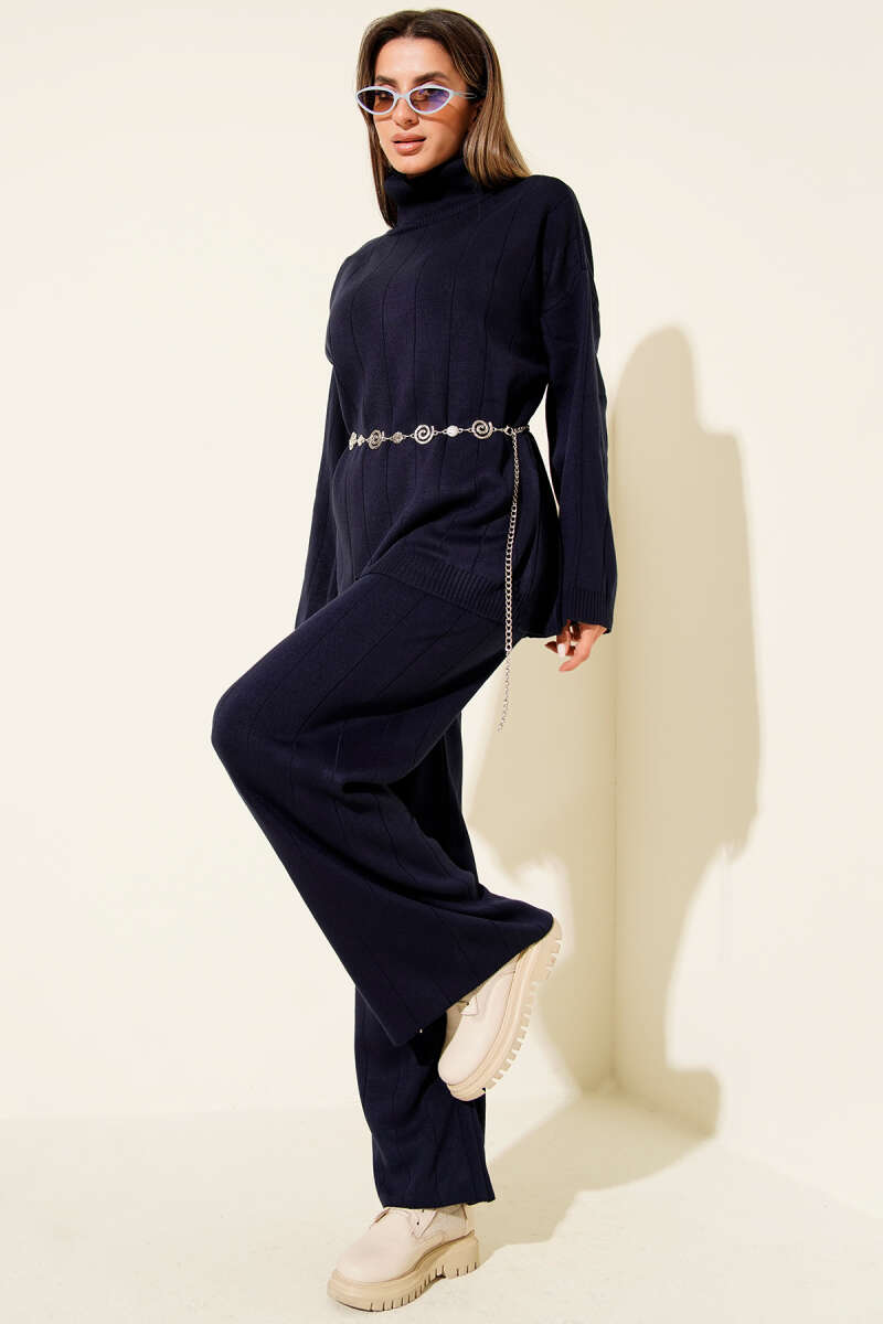 Balıkçı Yaka Triko İkili Takım Lacivert