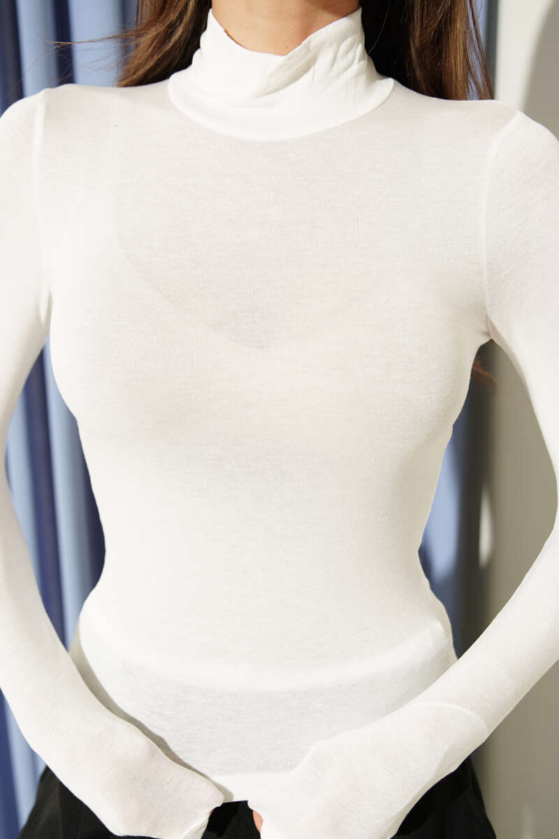Balıkçı Yaka Uzun Kol Düz Body Ekru