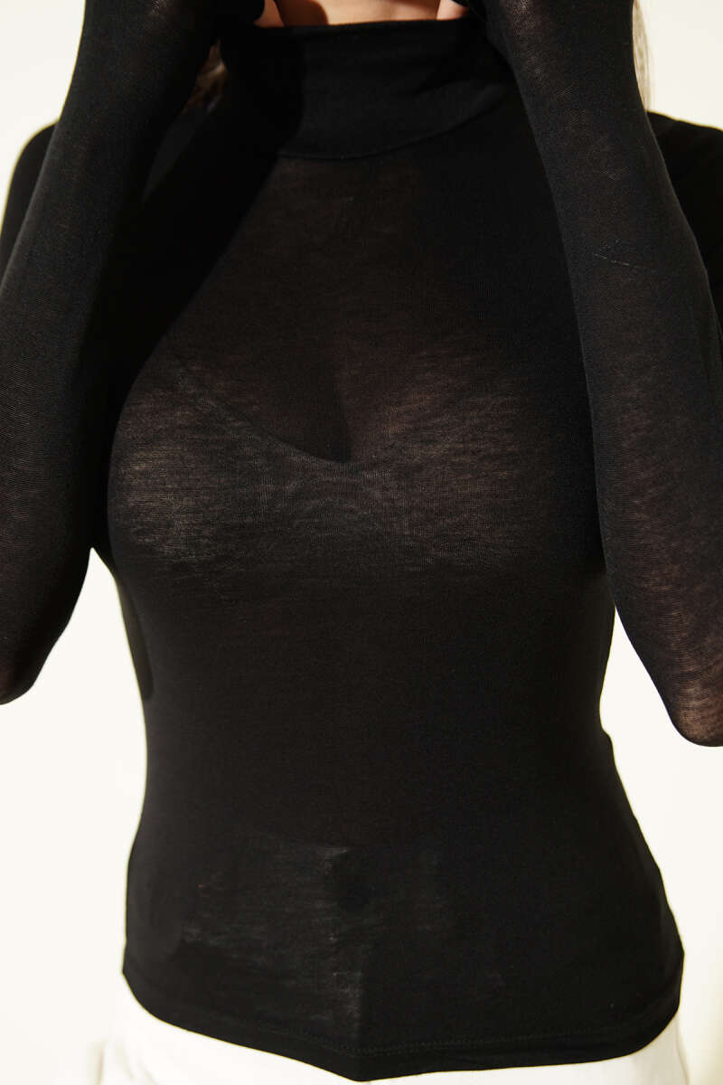 Balıkçı Yaka Uzun Kol Düz Body Siyah