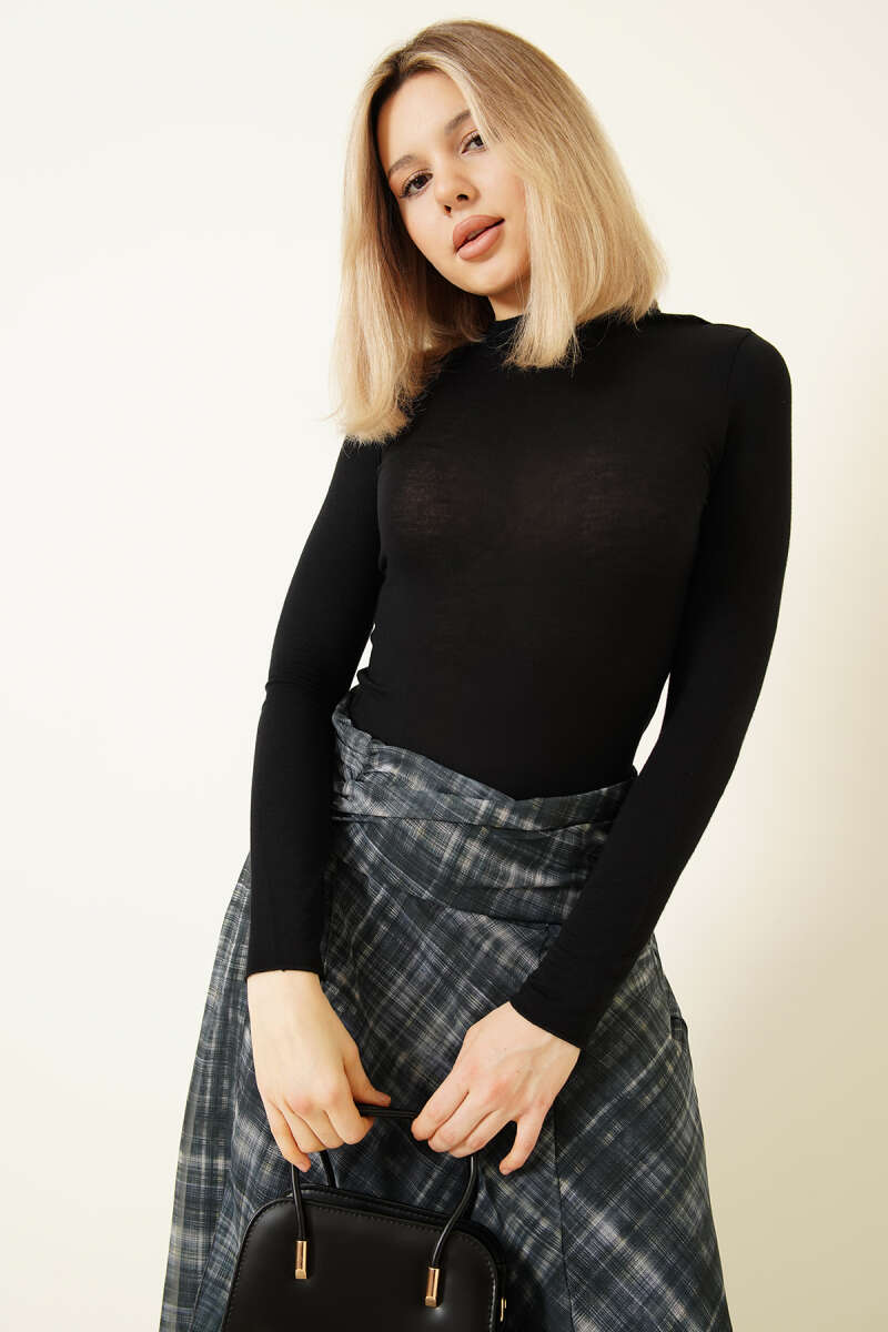 Balıkçı Yaka Uzun Kollu Body Siyah