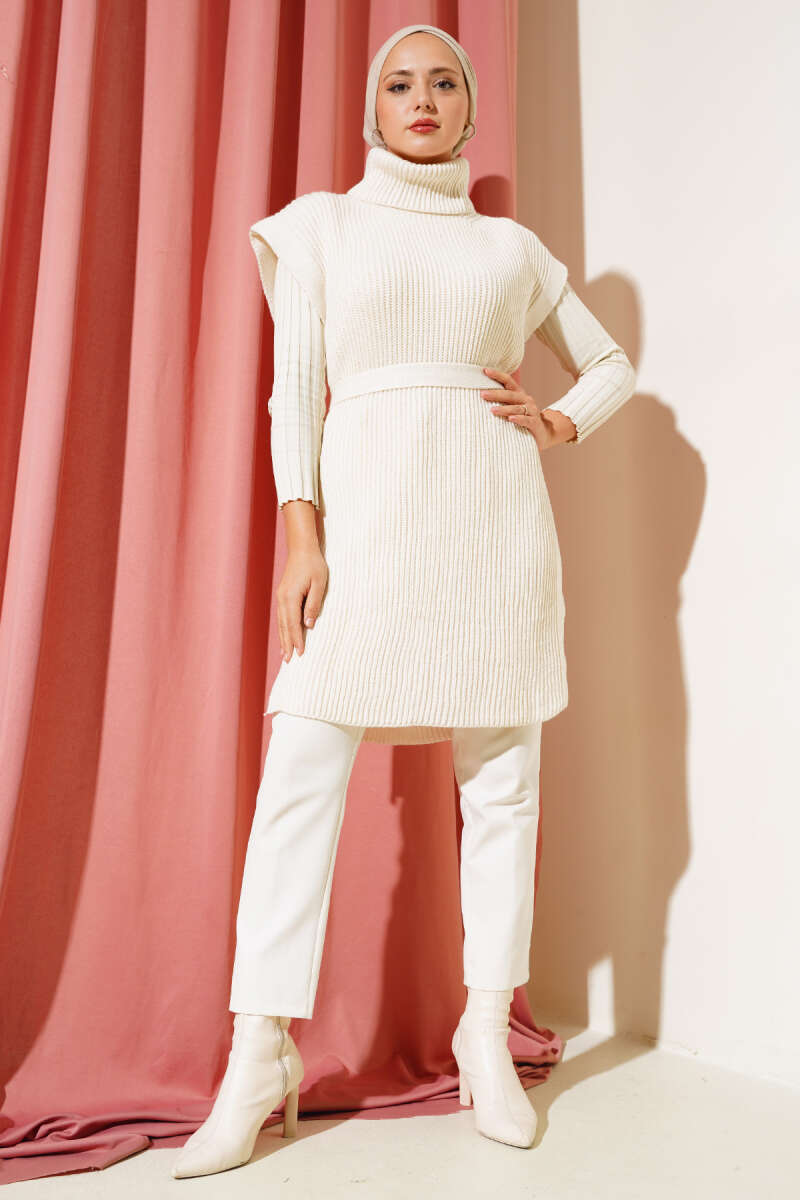 Kot Yakalı Fermuarlı Triko İkili Takım Lacivert