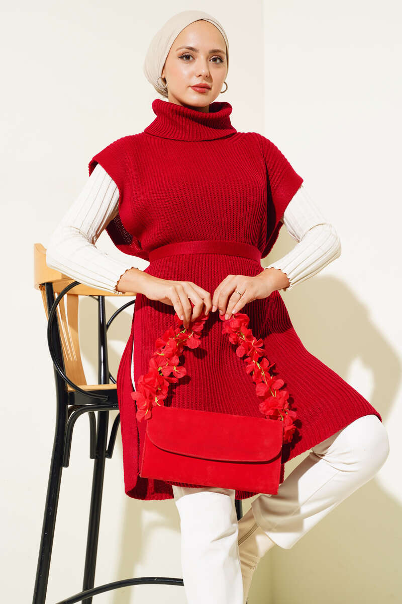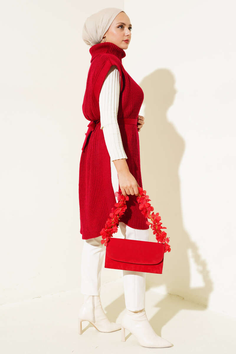 Kürk Cepli Scuba Tunik Bordo