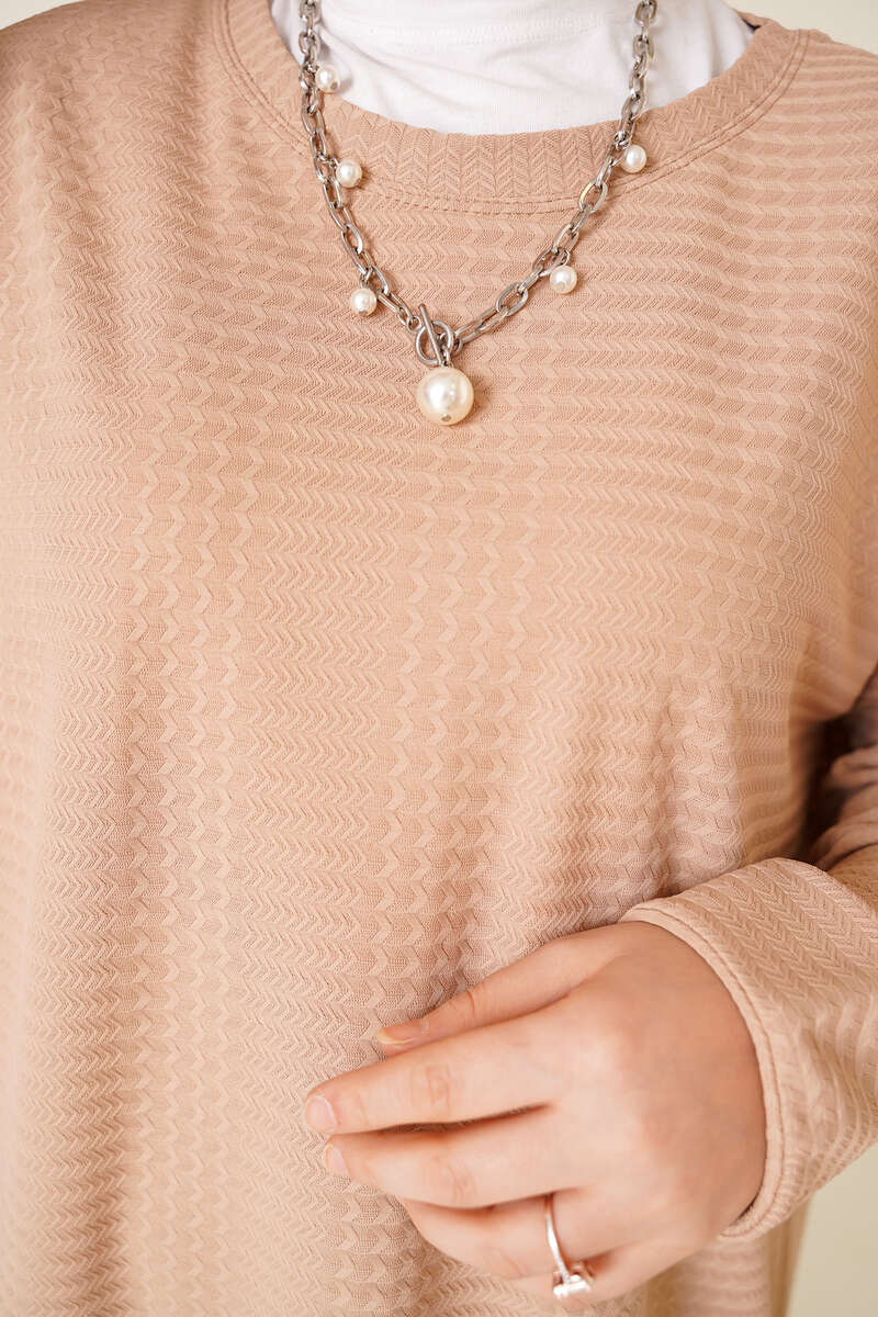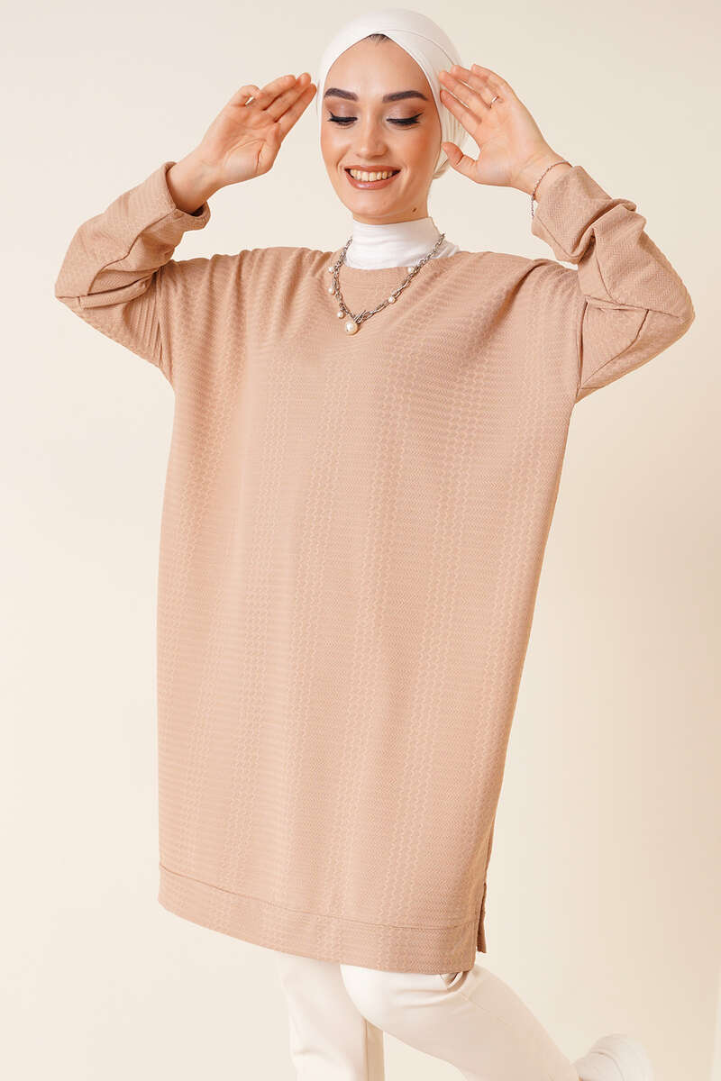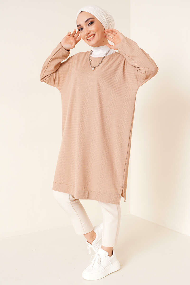 Baklava Kabartma Yumoş Triko Tunik Vizon