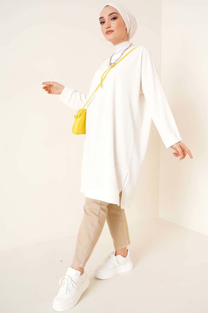 Yeni sezon tuniğimiz balıksırtı örme kumaştır. Düşük omuz model olan tuniğimiz salaş ve bol yapısıyla rahat kombinlerinizde şık bir görünüm sunacaktır. Etek uçları yırtmaçlı tuniğimiz sezonun favorileri arasındadır.