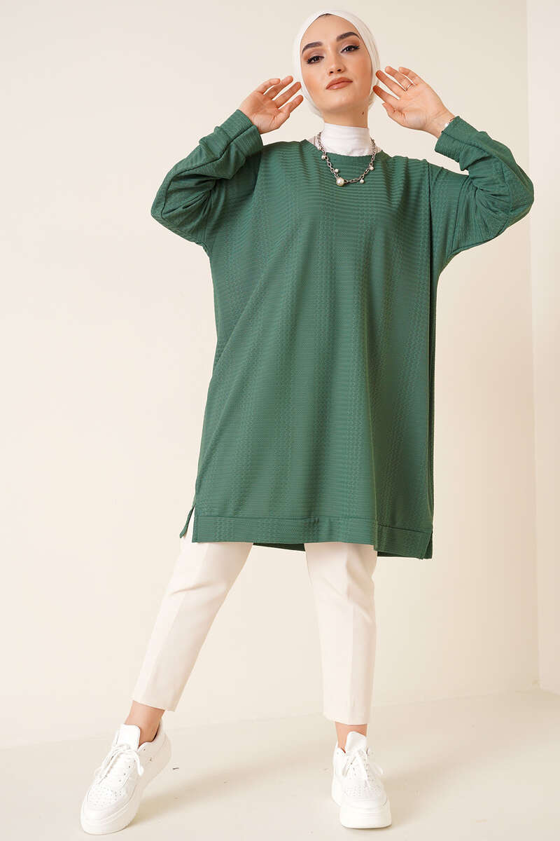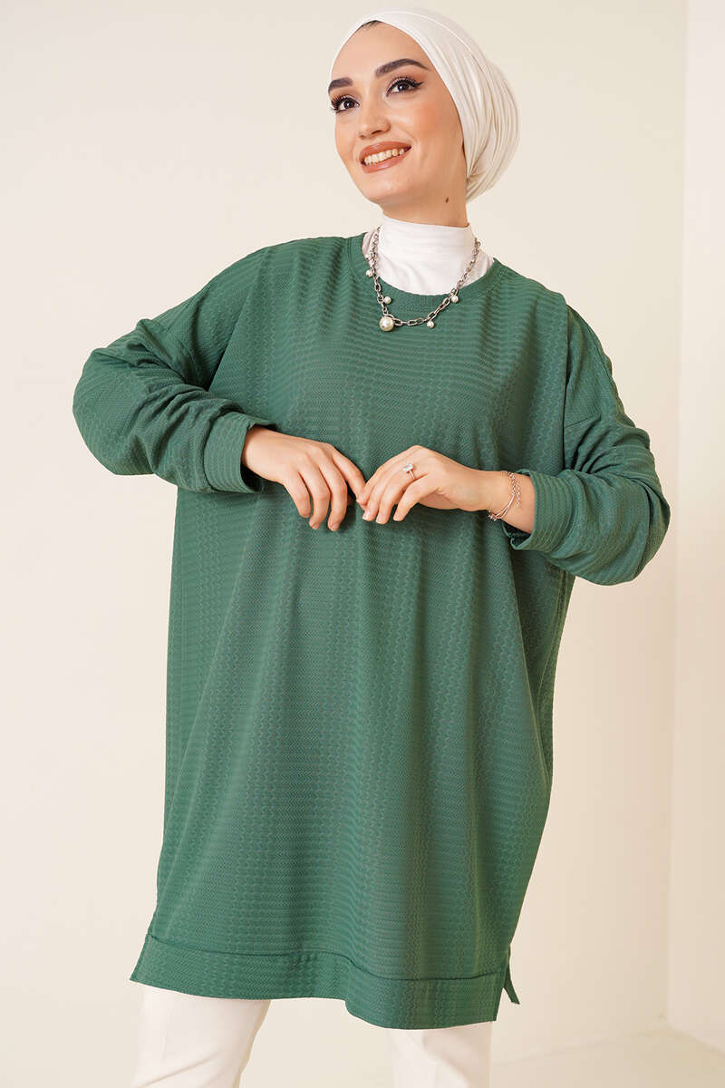 Balıksırtı Örme Tunik Zümrüt Yeşili