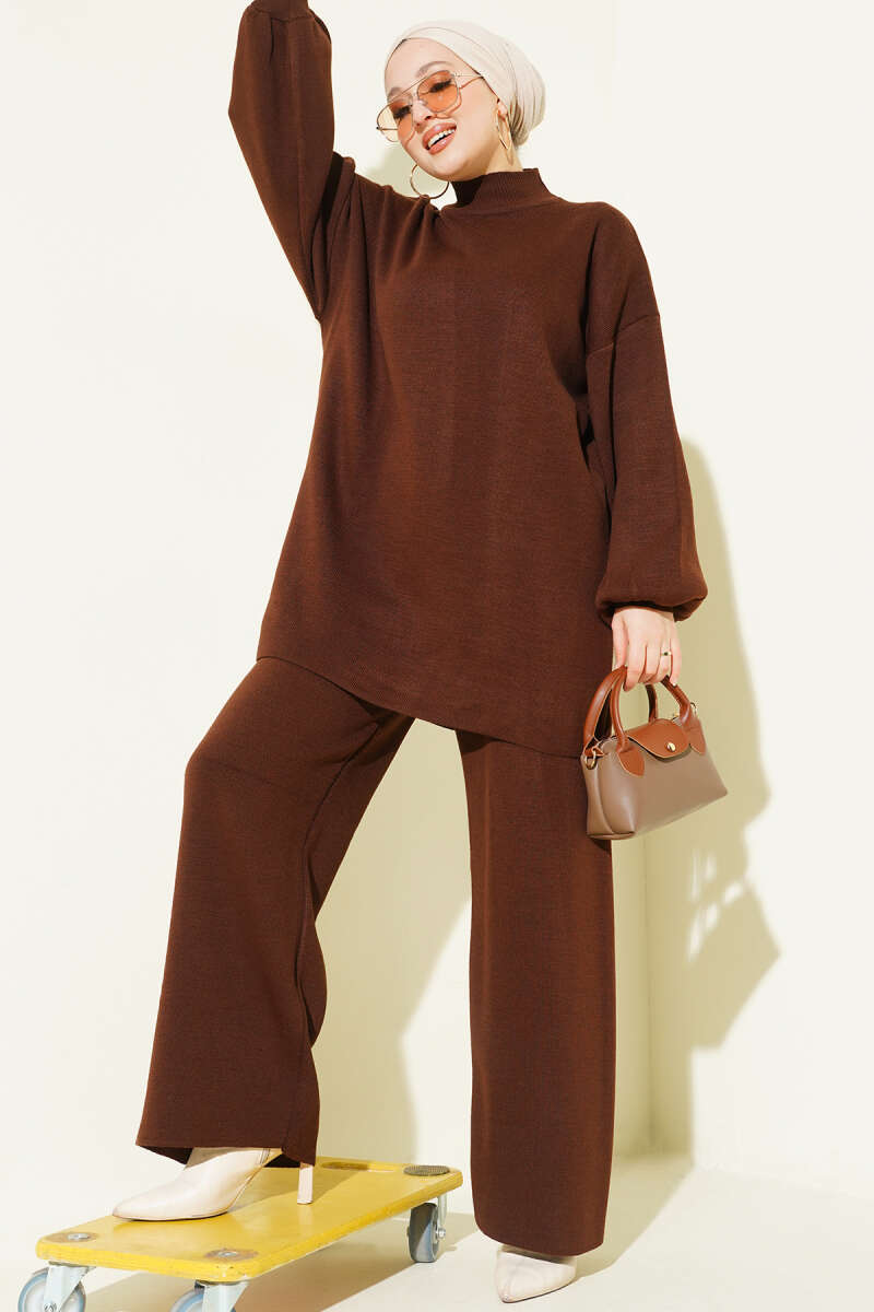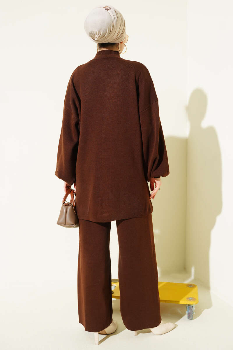 Önü Çımalı Tunik İkili Takım Acı Kahve
