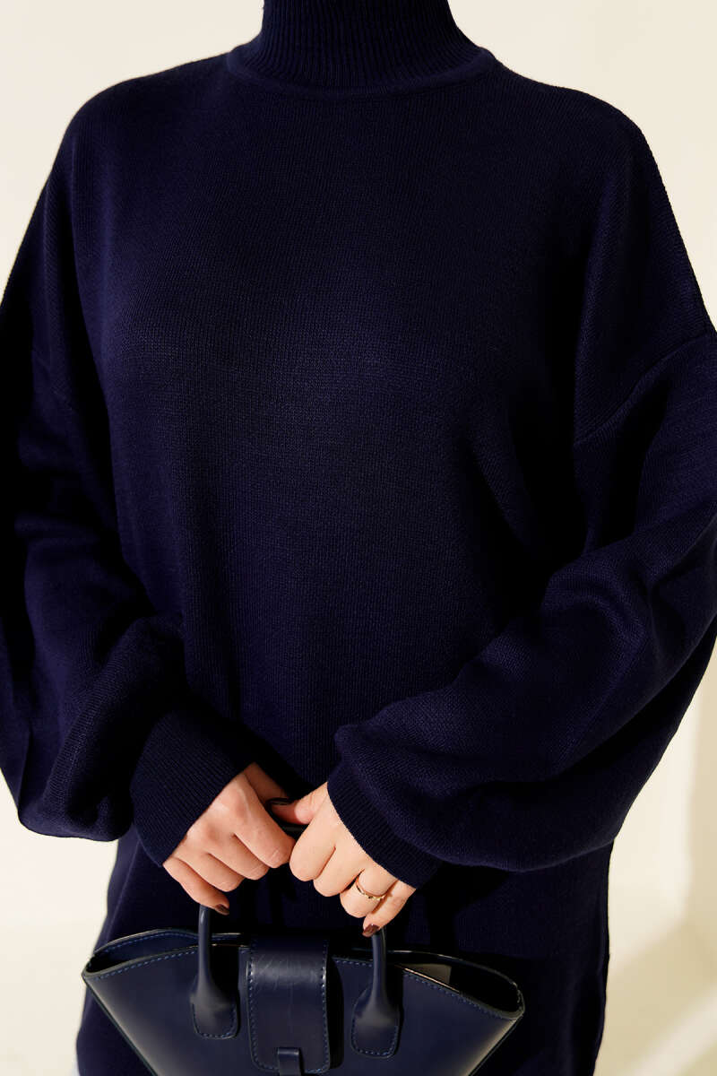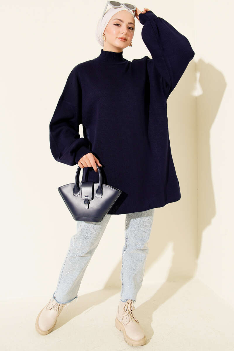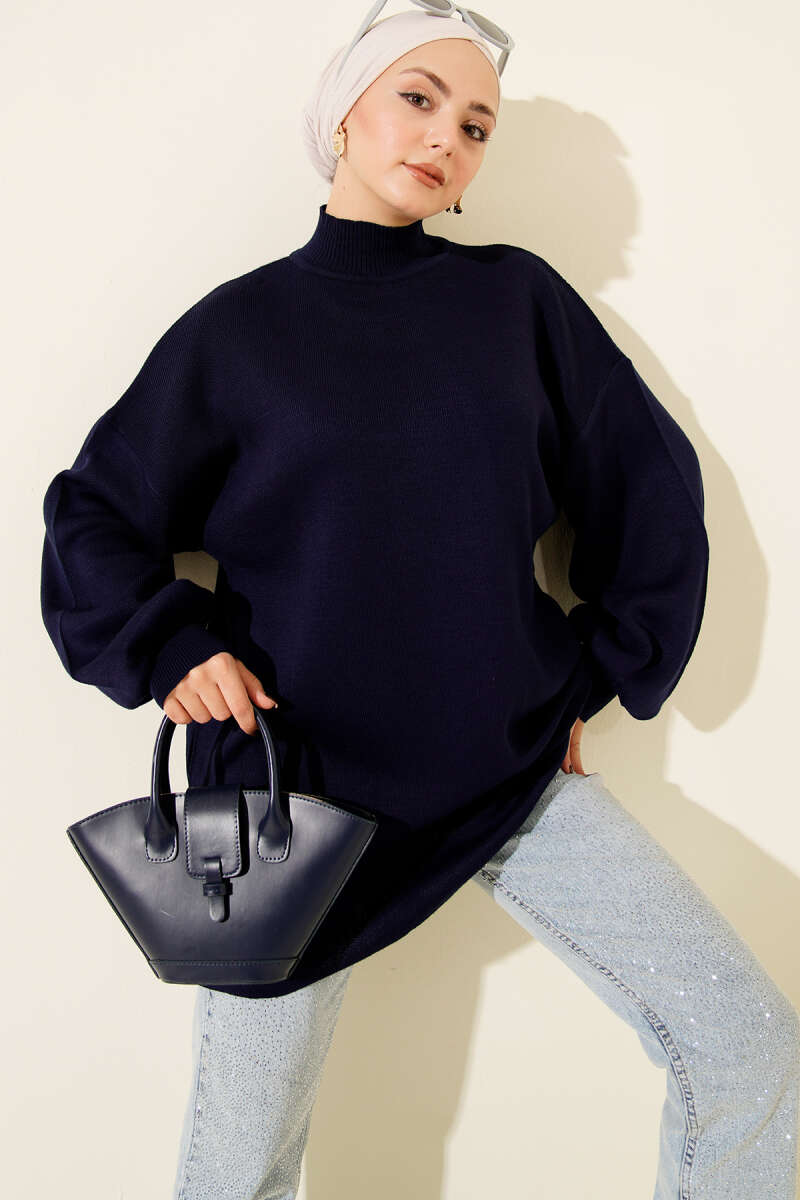 Balon Kol Balıkçı Yaka Triko Tunik Siyah