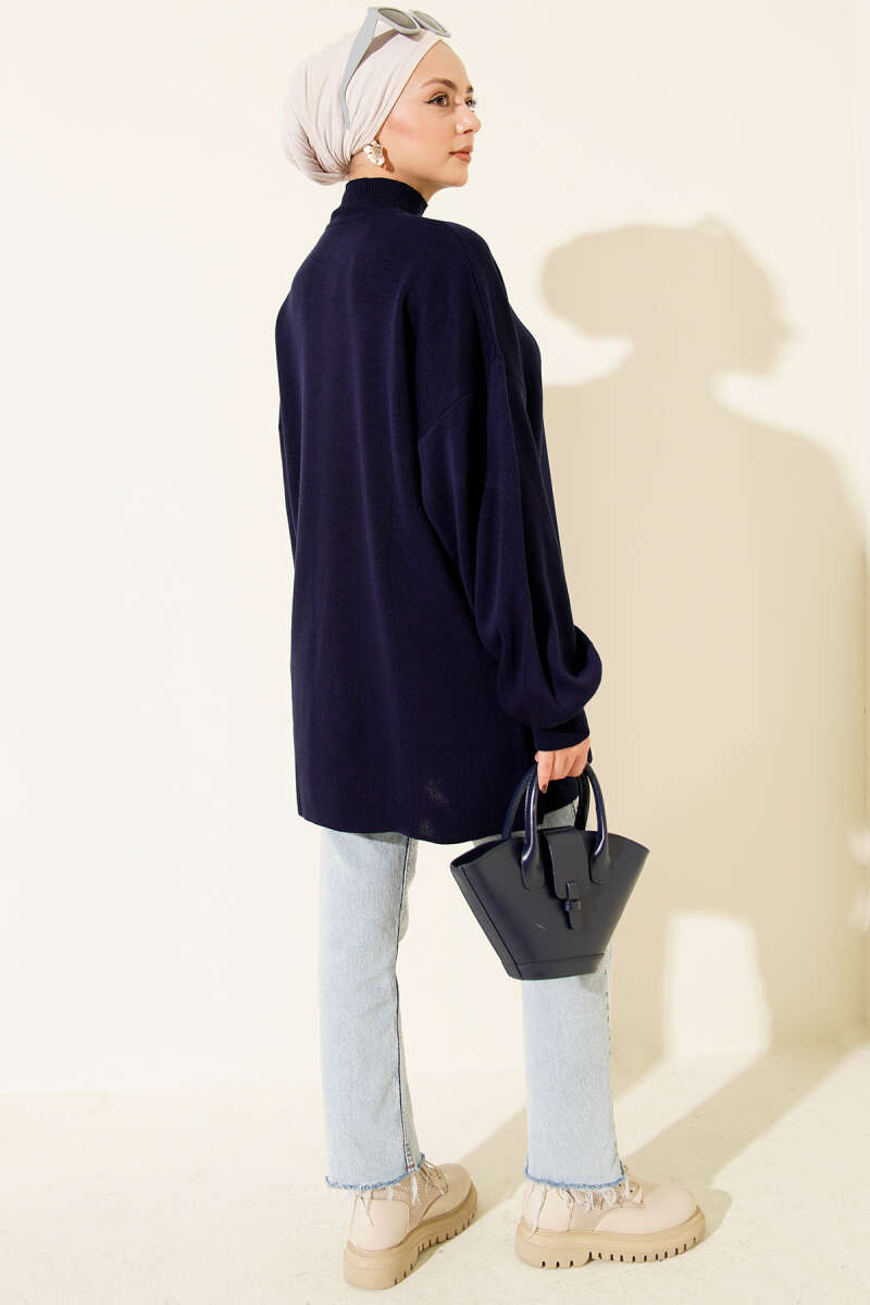 Baklava Desen Yumoş Triko Tunik Lacivert