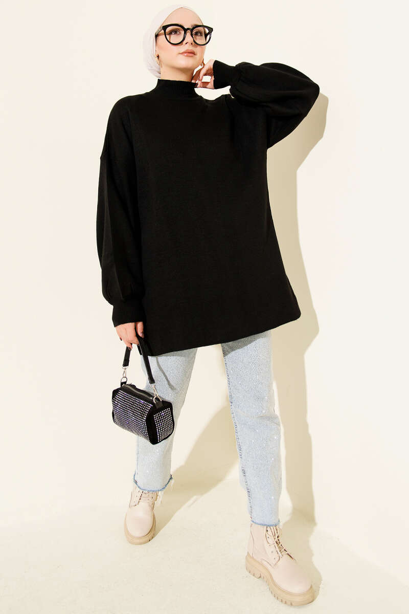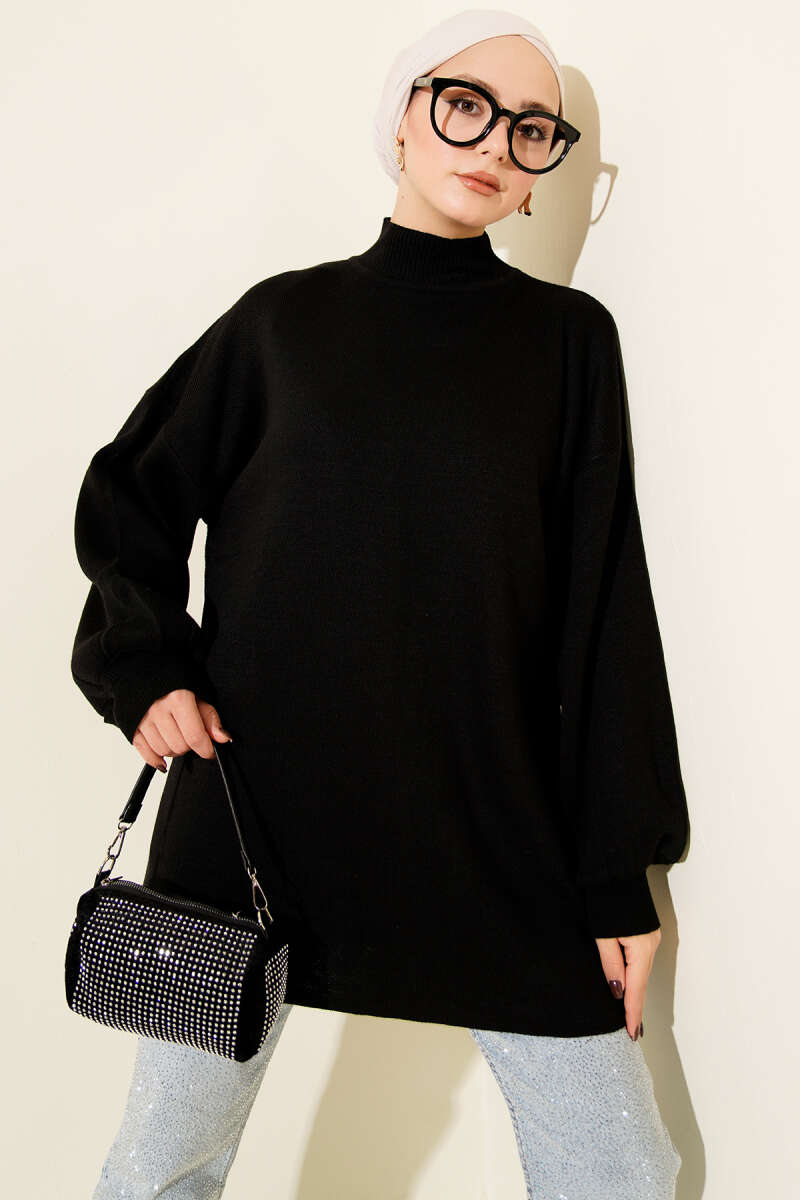 Balon Kol Balıkçı Yaka Triko Tunik Lacivert