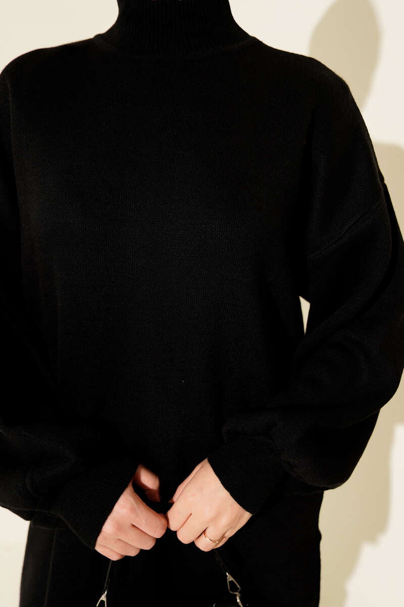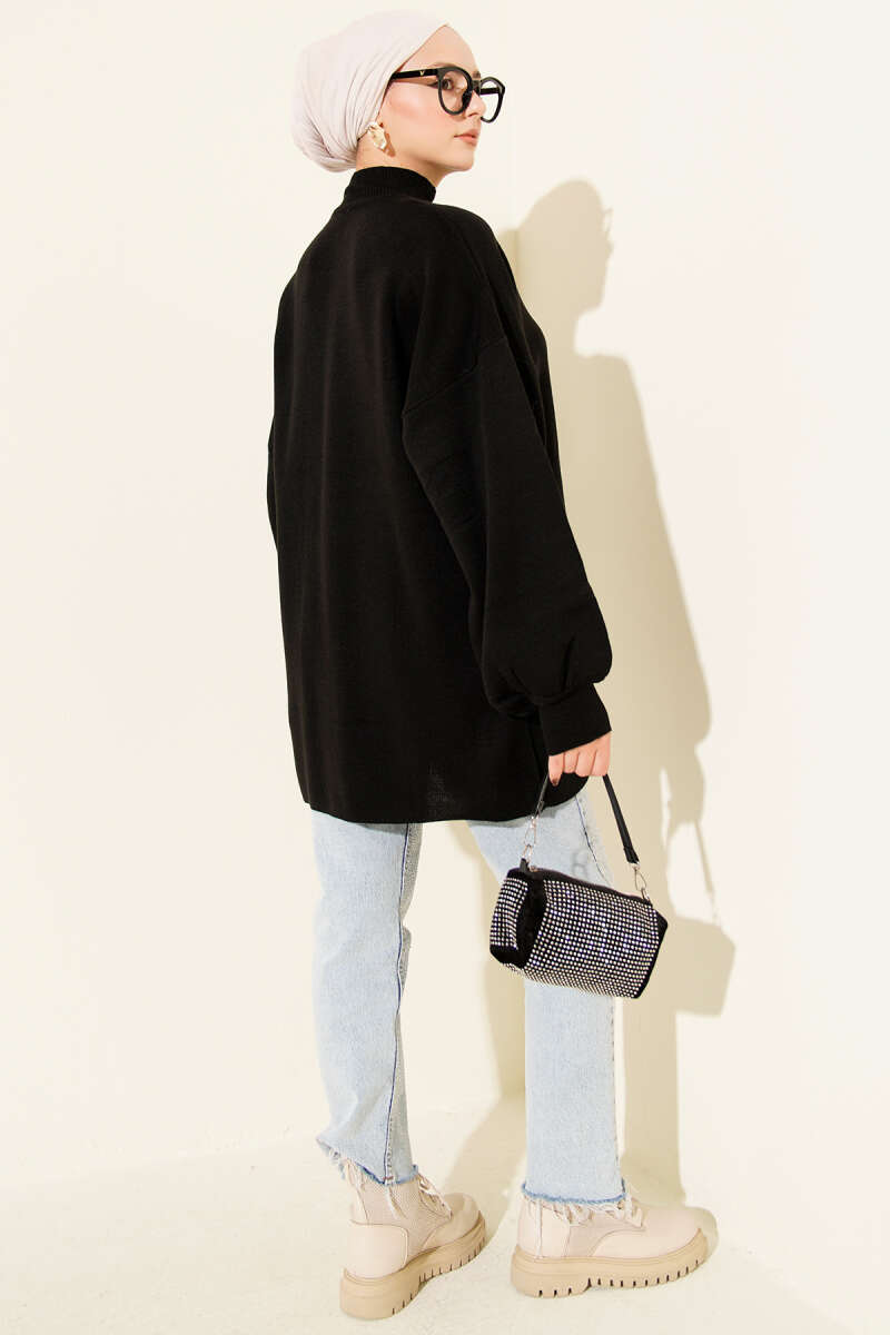 Balon Kol Balıkçı Yaka Triko Tunik Zümrüt Yeşili