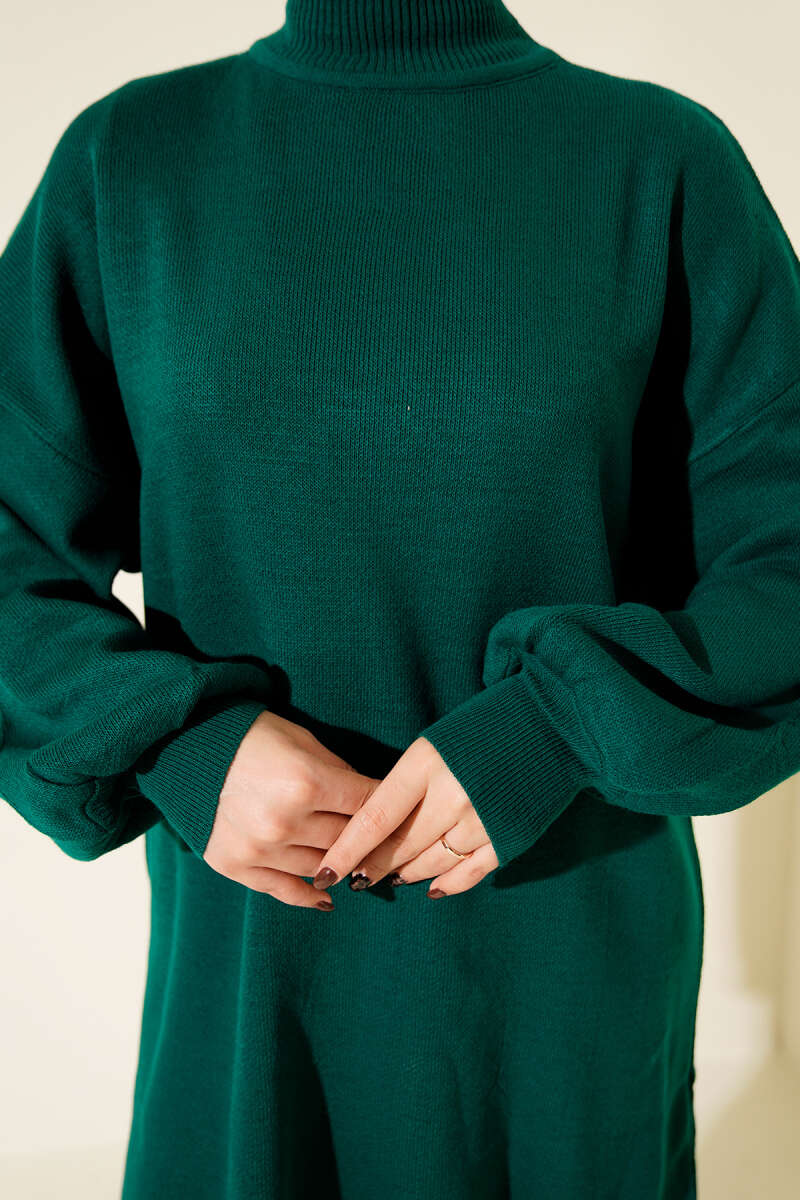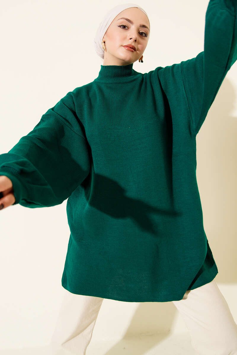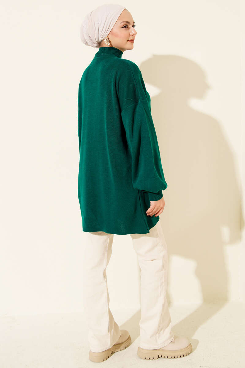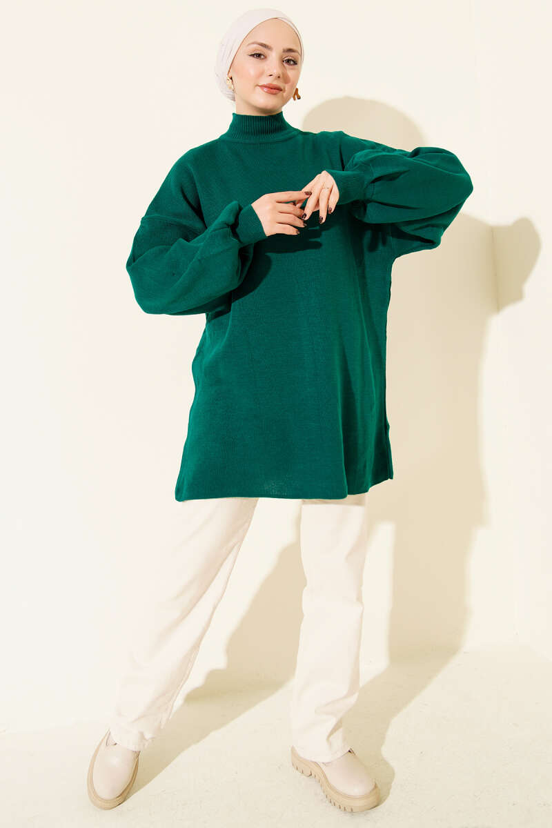 Balon Kol Balıkçı Yaka Triko Tunik Lacivert