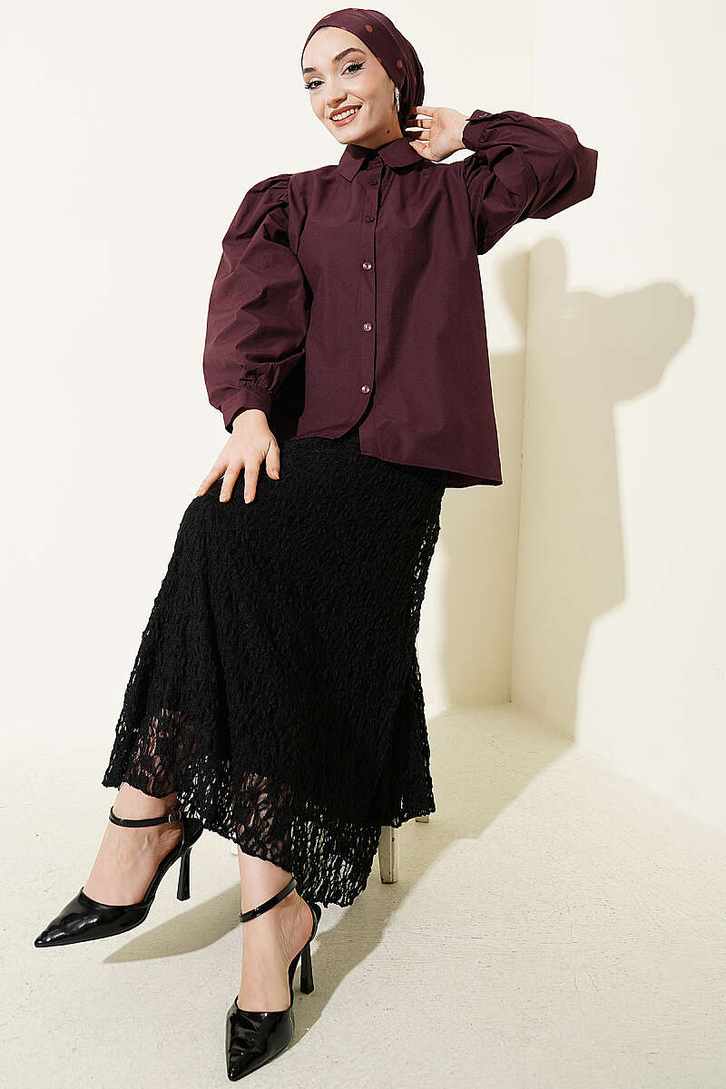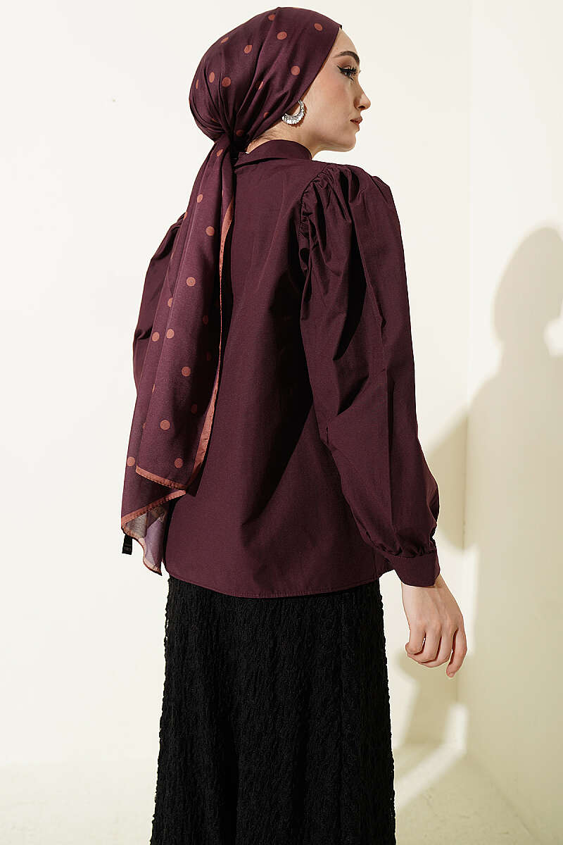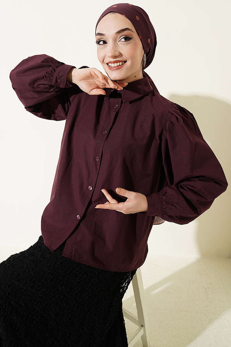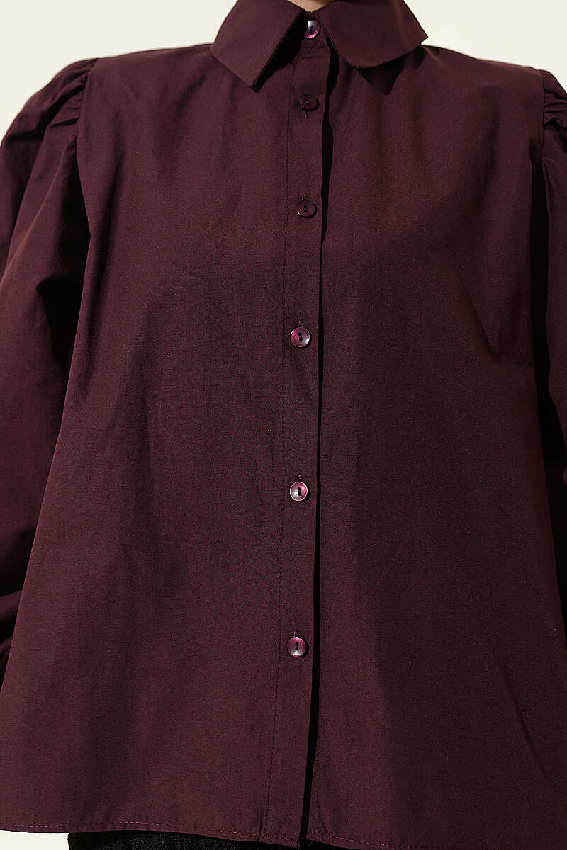 Balon Kol Basic Kısa Gömlek Mürdüm