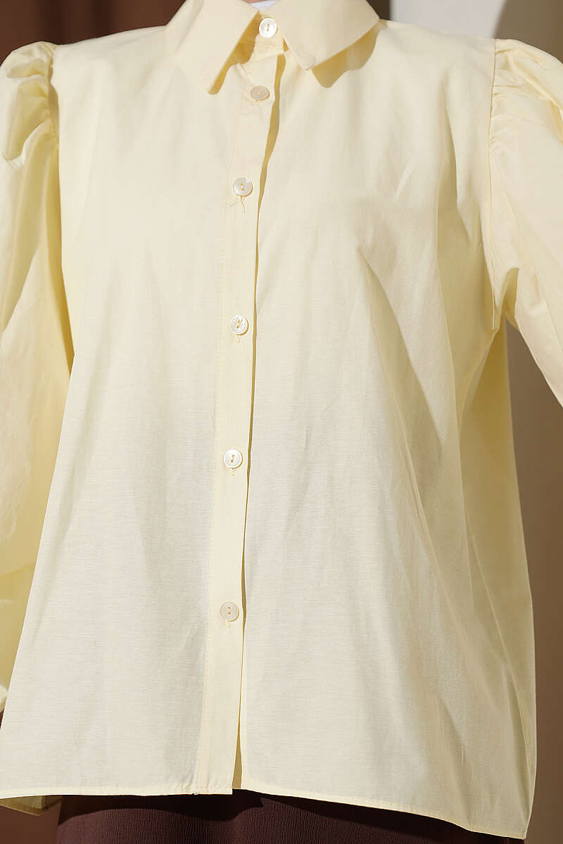 Büzgülü Fiyonklu Kısa Gömlek Sarı
