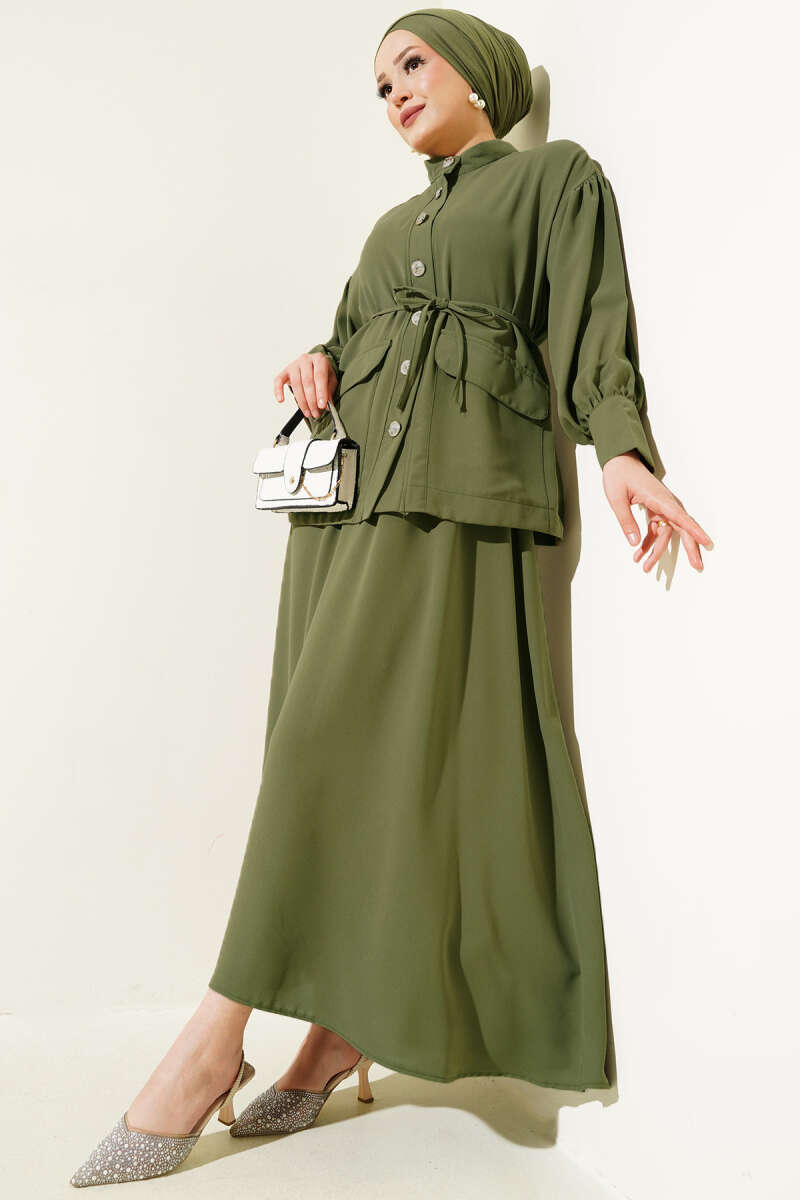 Balon Kol Bel İp Bağcıklı İkili Takım Haki