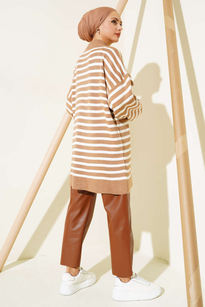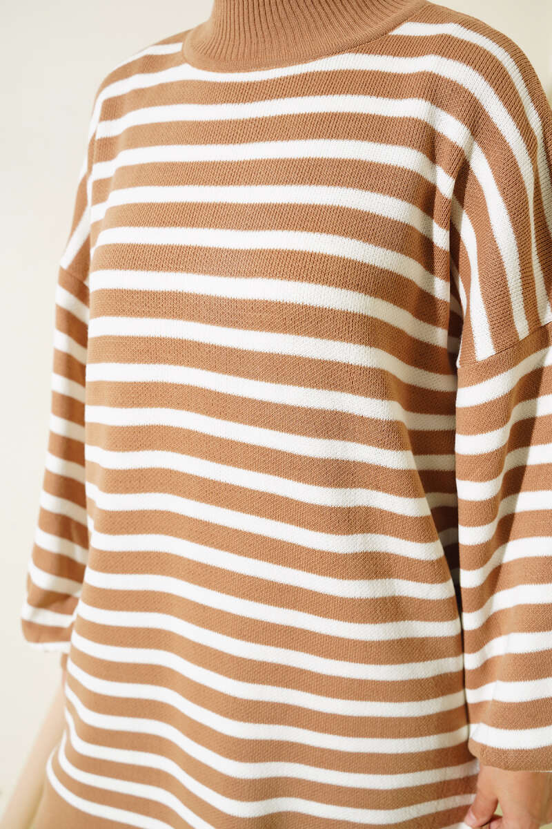 Salaş Bisiklet Yaka Simli Triko Tunik Kahve