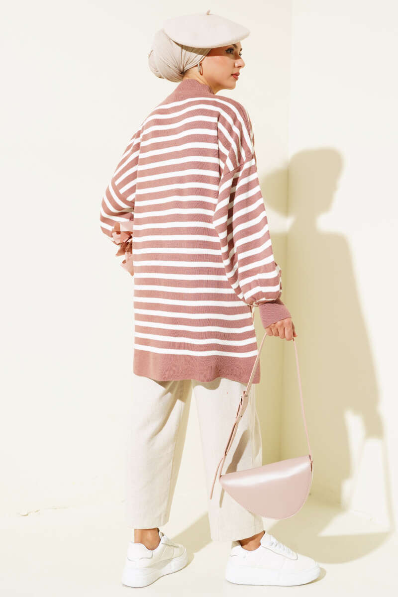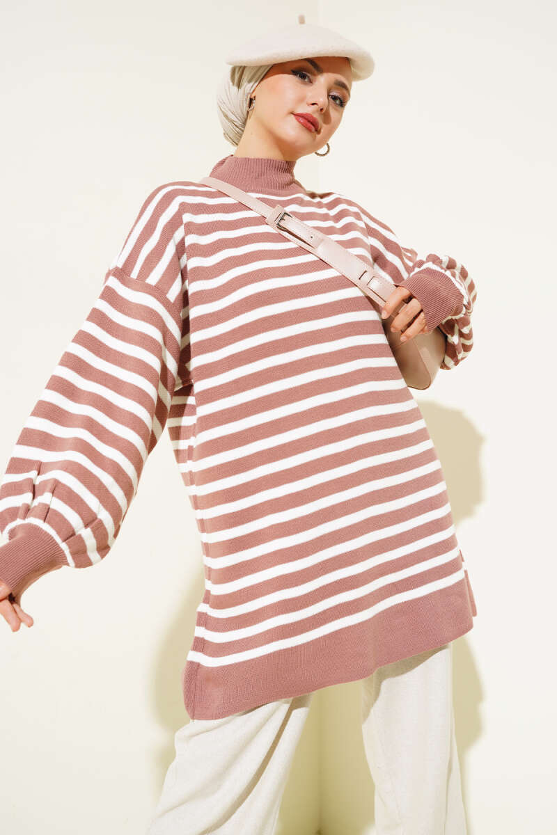Salaş Bisiklet Yaka Simli Triko Tunik Vizon