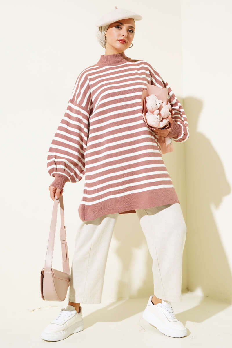 Salaş Bisiklet Yaka Simli Triko Tunik Taş