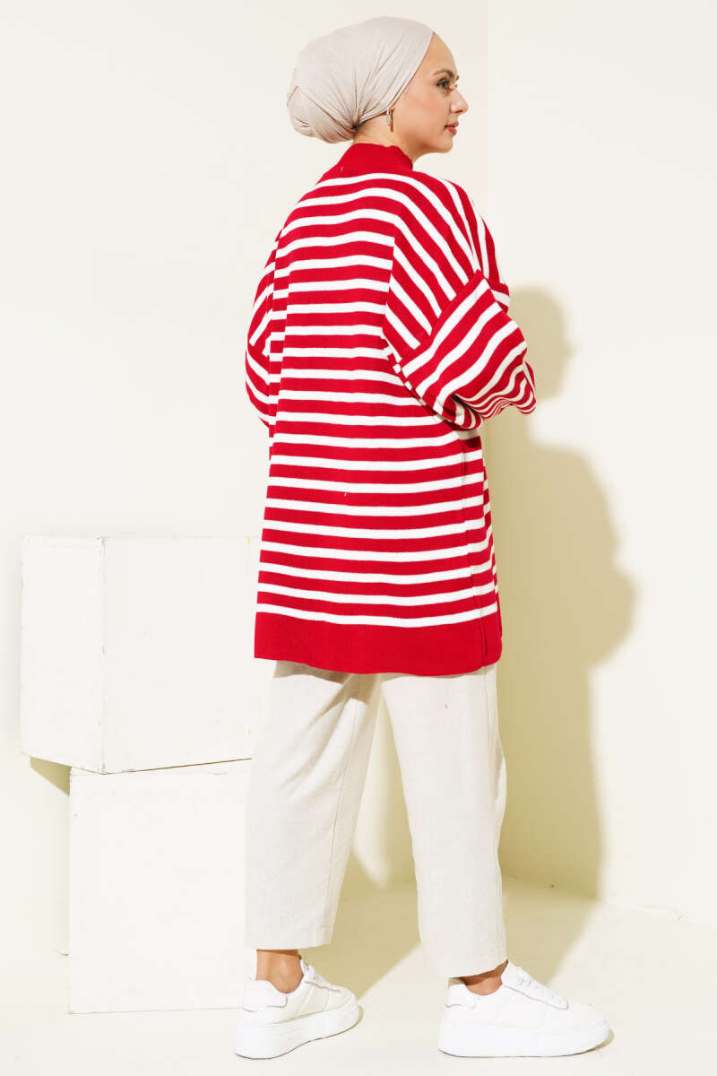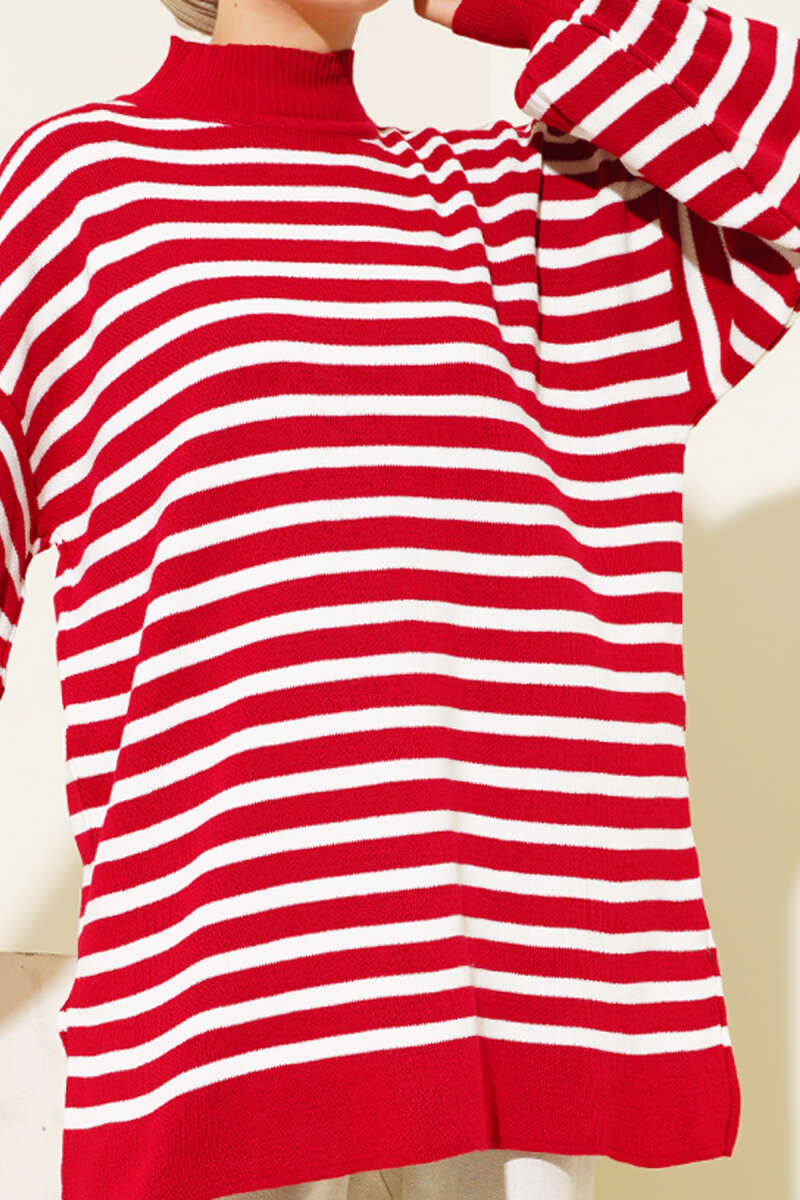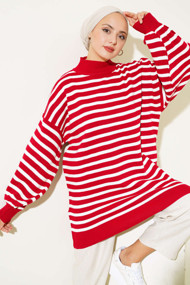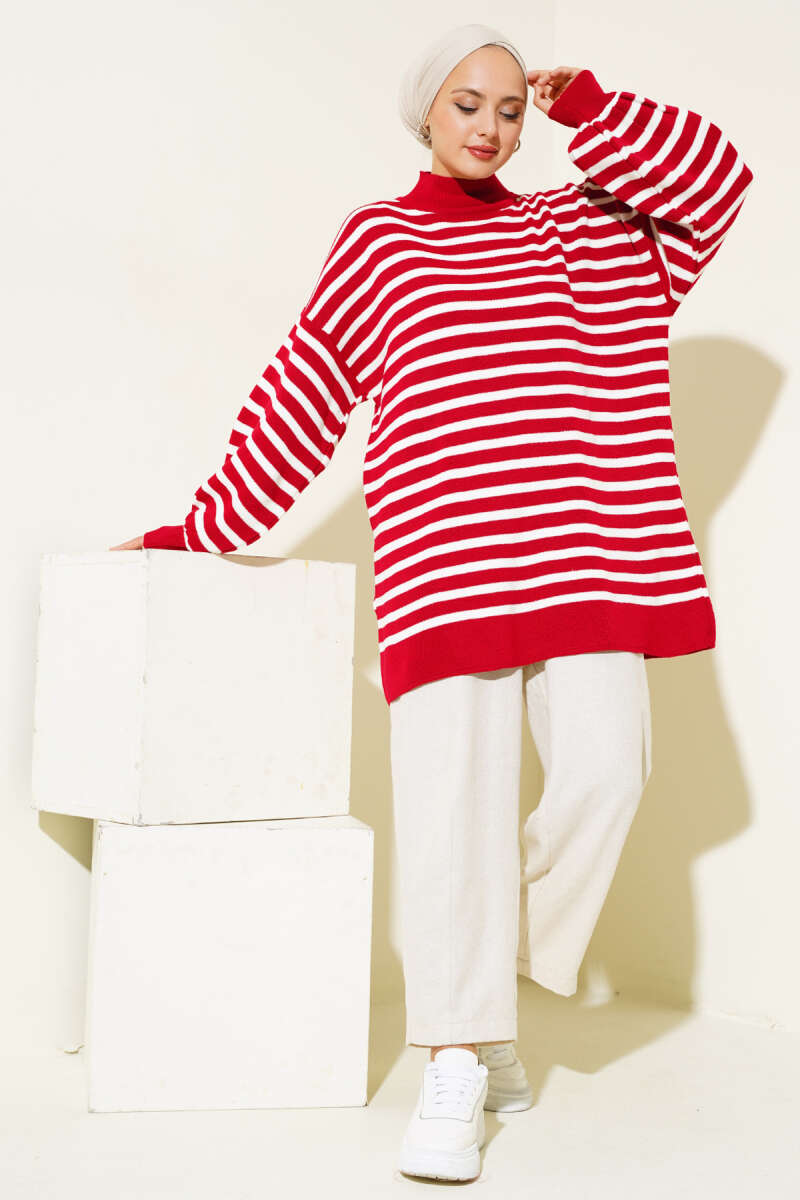 Salaş Bisiklet Yaka Simli Triko Tunik Kırmızı